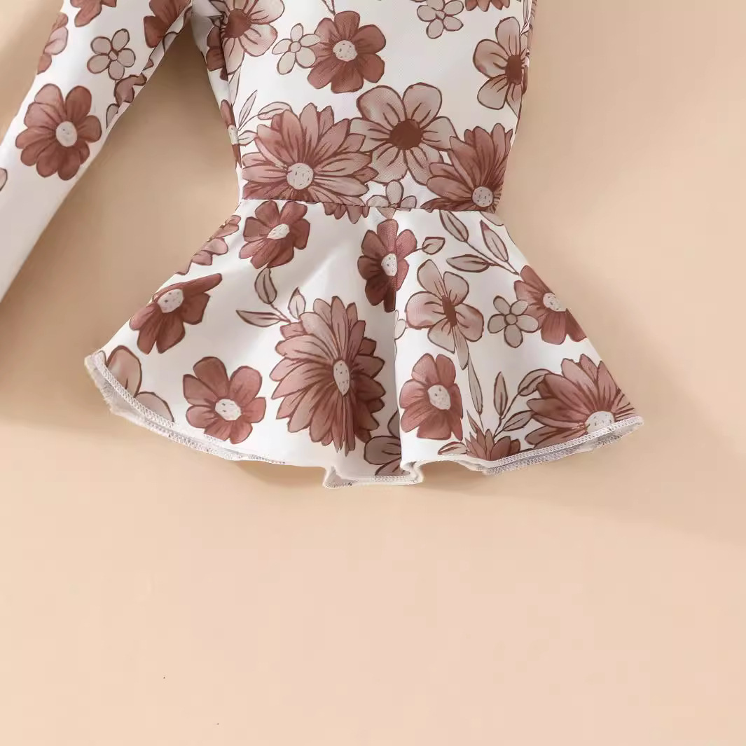 Baby Girl Sunken Stripe Long Sleeve Flared Pants Three-piece Set