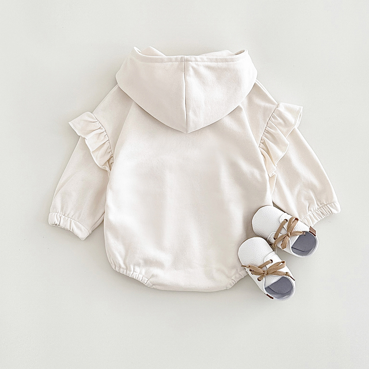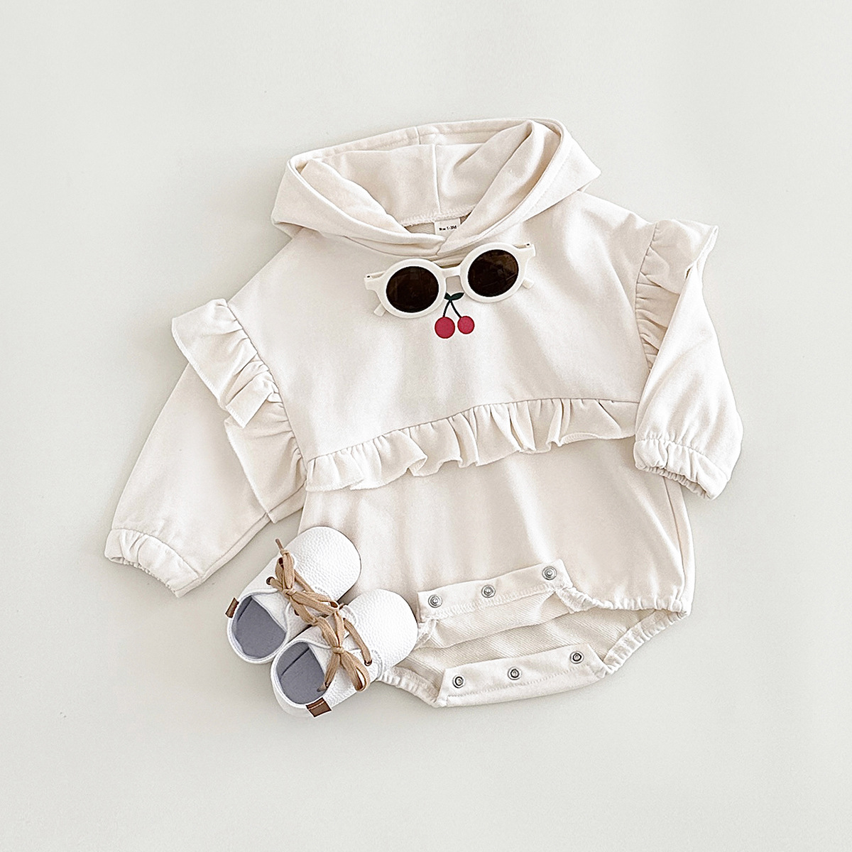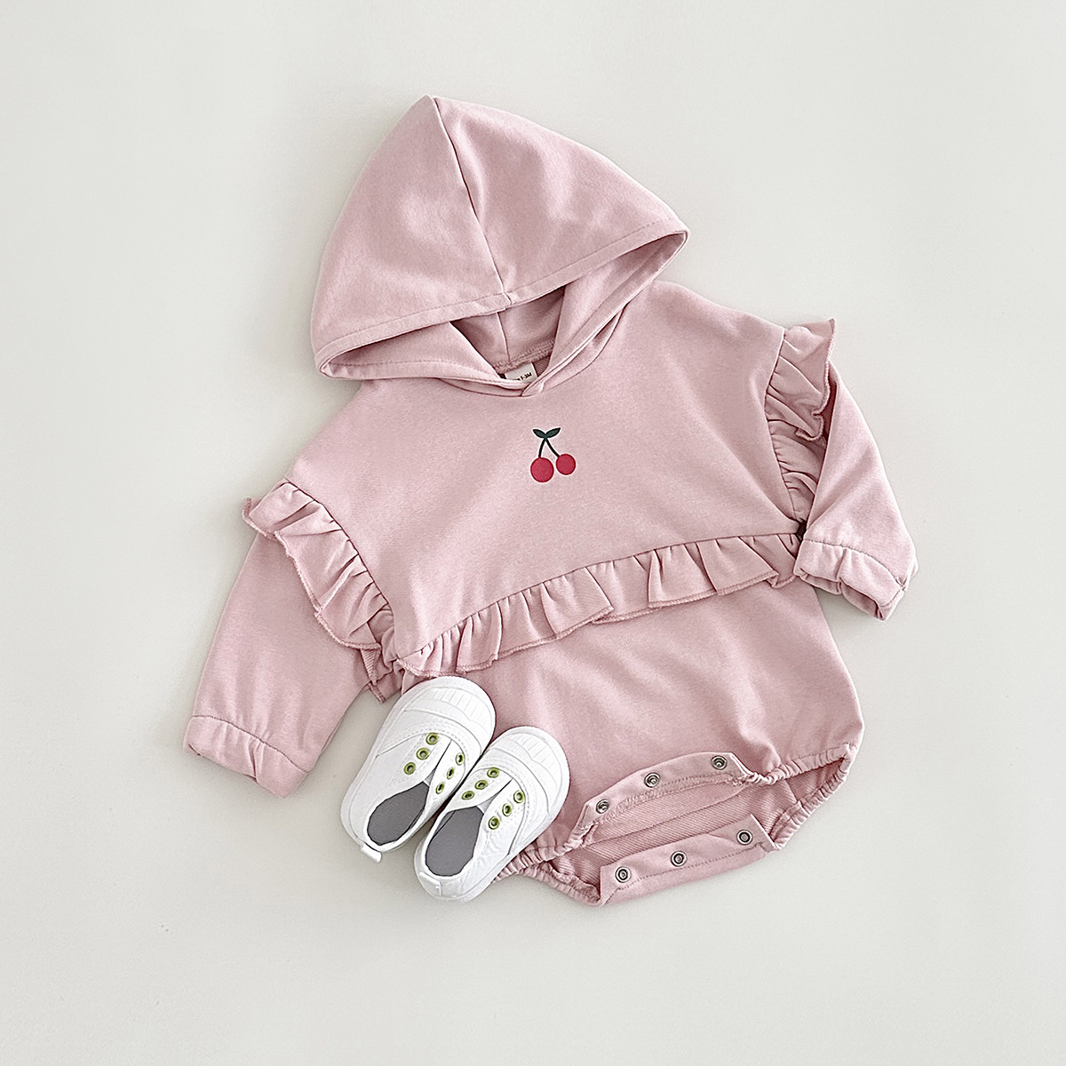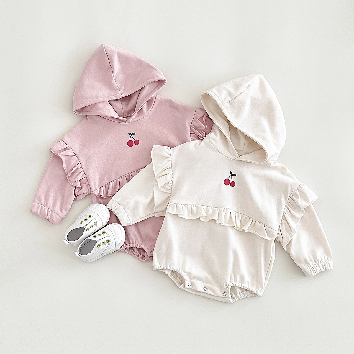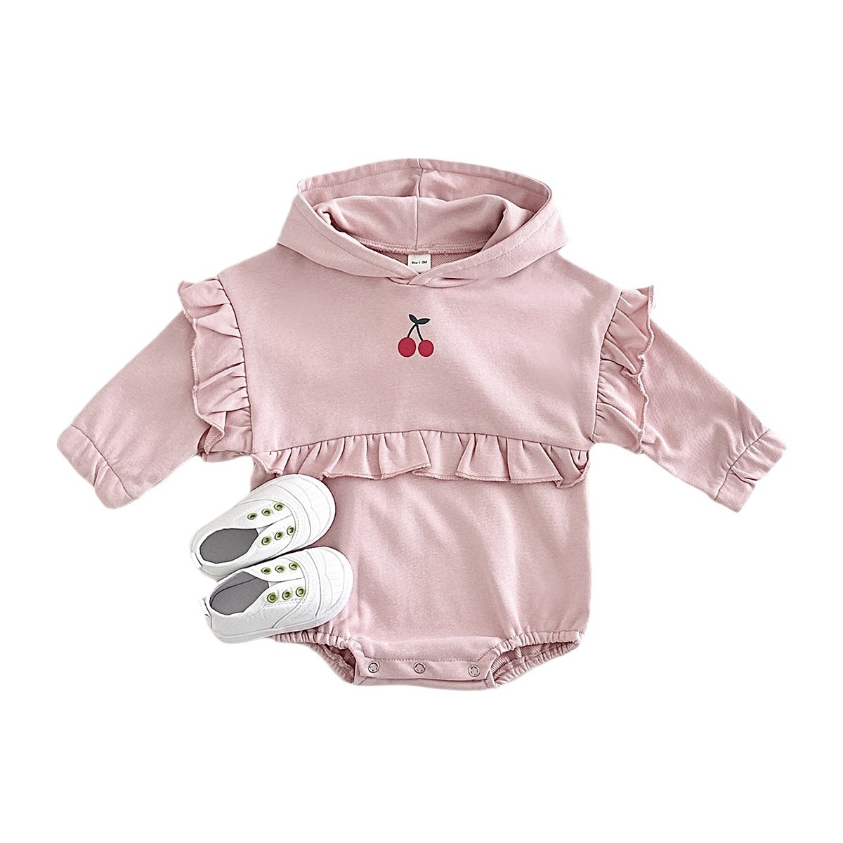 Baby Girl Sweet Cherry Embroidered Long Sleeve Hooded Crawling Suit Jumpsuit