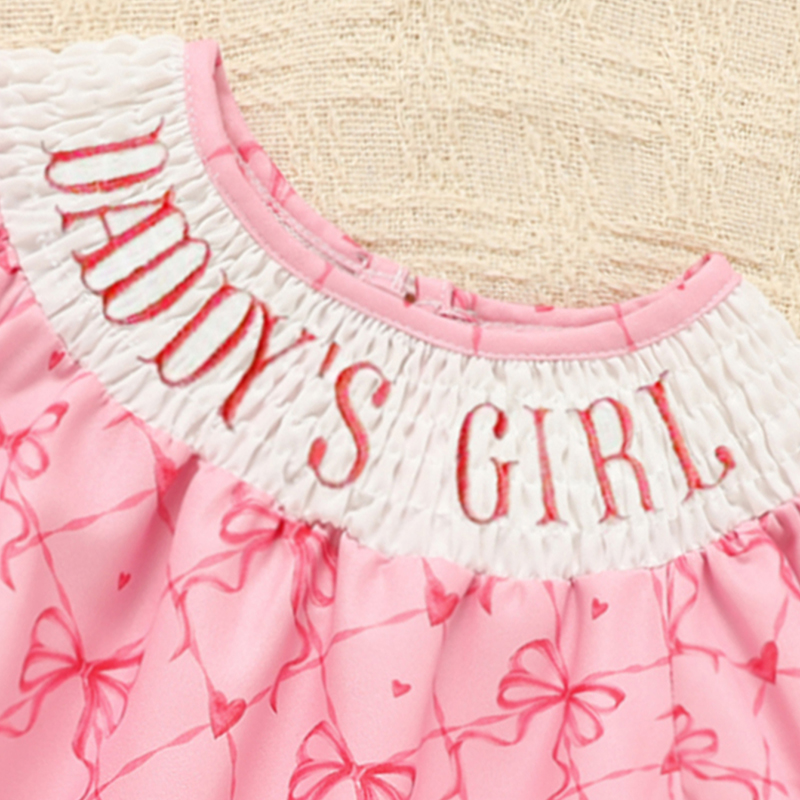 Baby Girl's Bowknot Romper – "Daddy's Girl" Printed Bubble Sleeve Jumpsuit