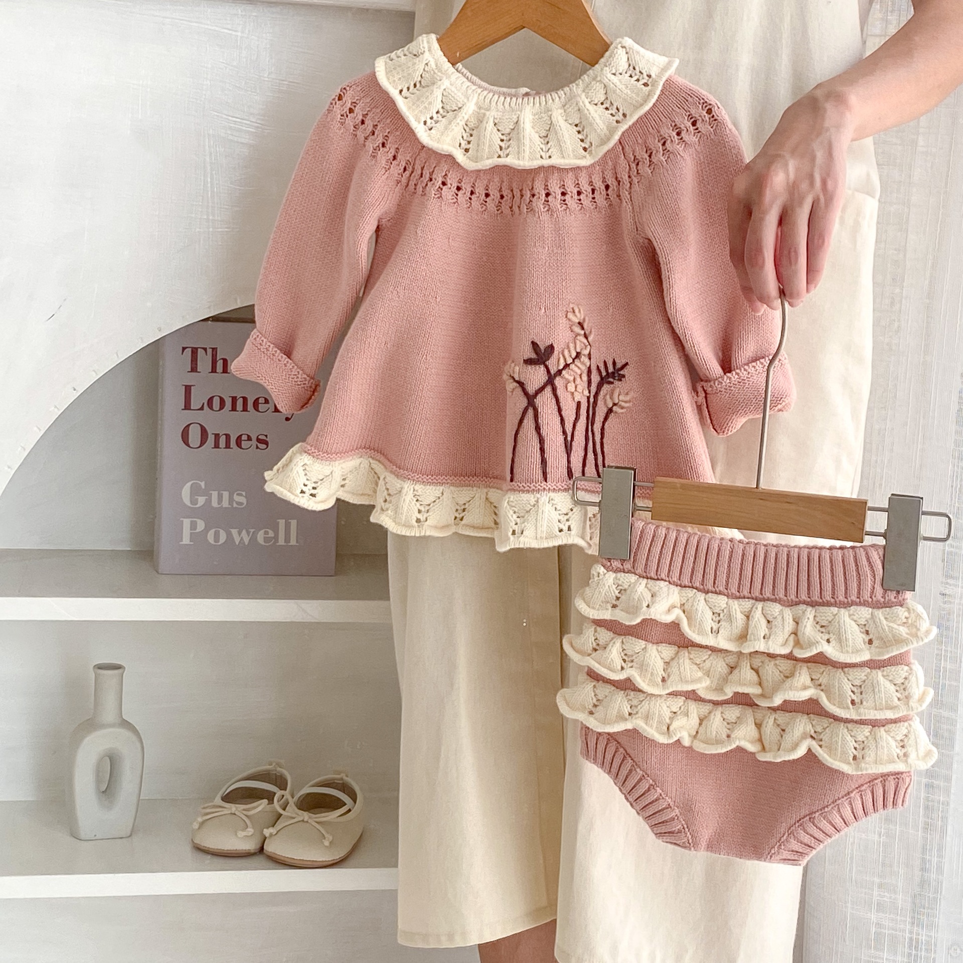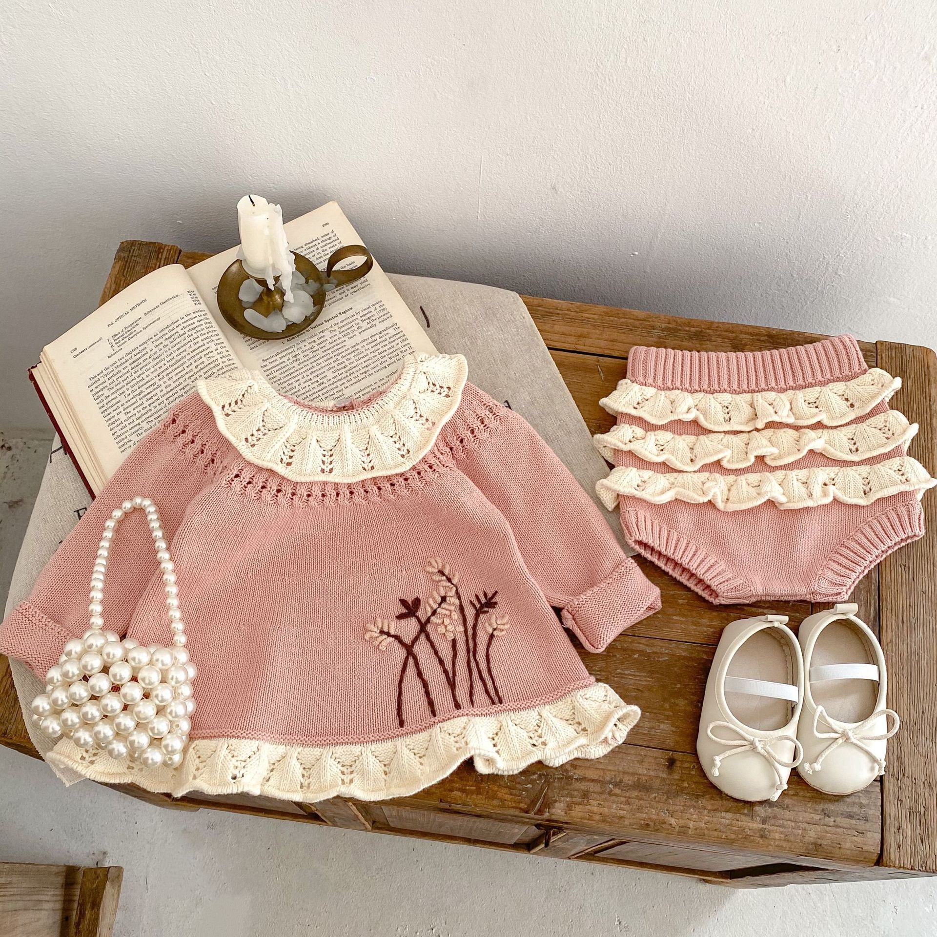 Color: top pearl powder, pants pearl powder