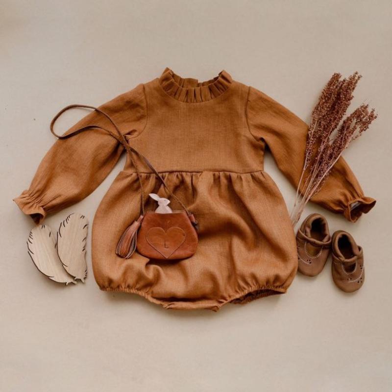 Baby Jumpsuit Autumn And Winter Cotton Linen Lotus Leaf Romper