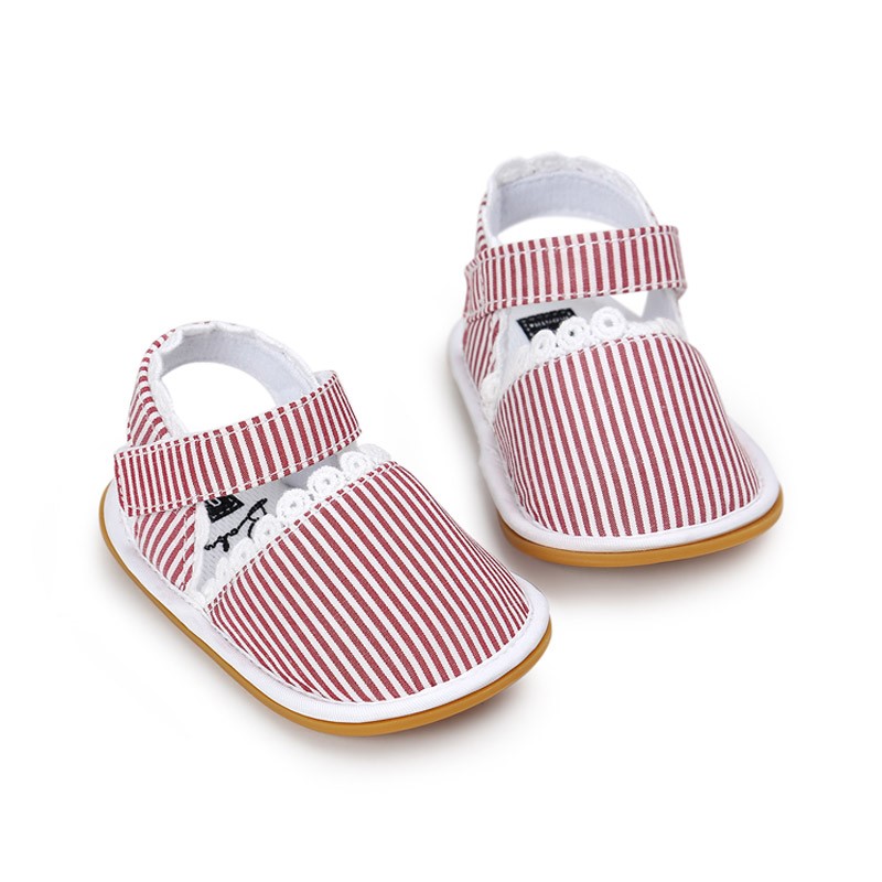 Suitable season: spring, summer, autumn Upper material: cotton Sole material: beef tendon sole Closed way: Velcro Shoes Features: Very cute sandals for toddlers! Good to wear,