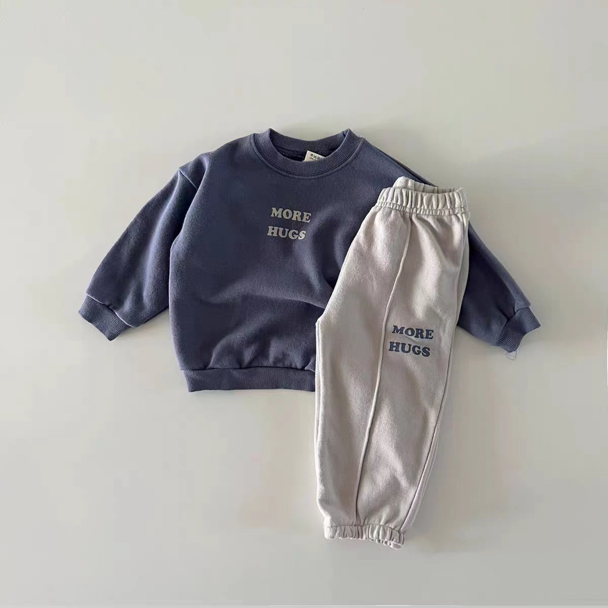 Color: dark blue top apricot pants, beige top pink pants