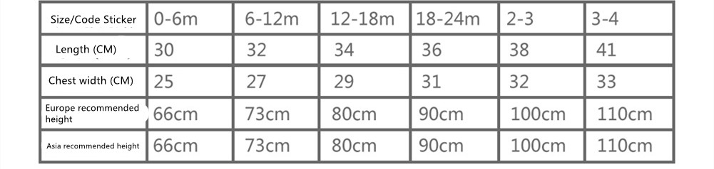 size:Suitable height: 0-6m, 6-12m, 12-18m, 18-24m, 2-3, 3-4