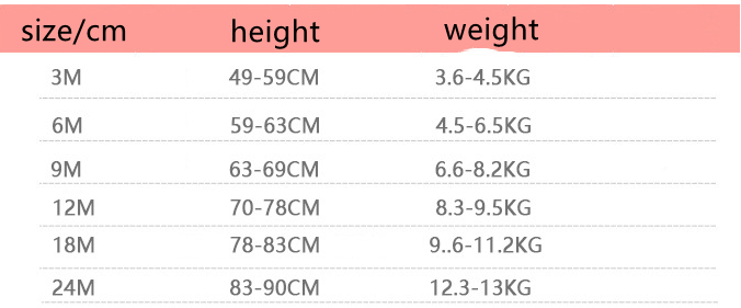 Suitable height: 3M, 6M, 9M, 12M, 18M, 24M