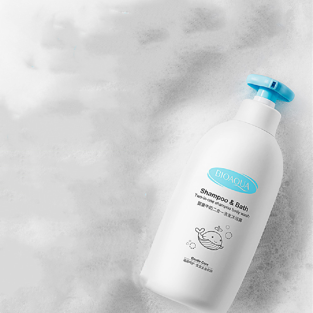 Moisturizing and caring for baby and child's soft hair and delicate skin while cleaning, a combination of washing and care - use
