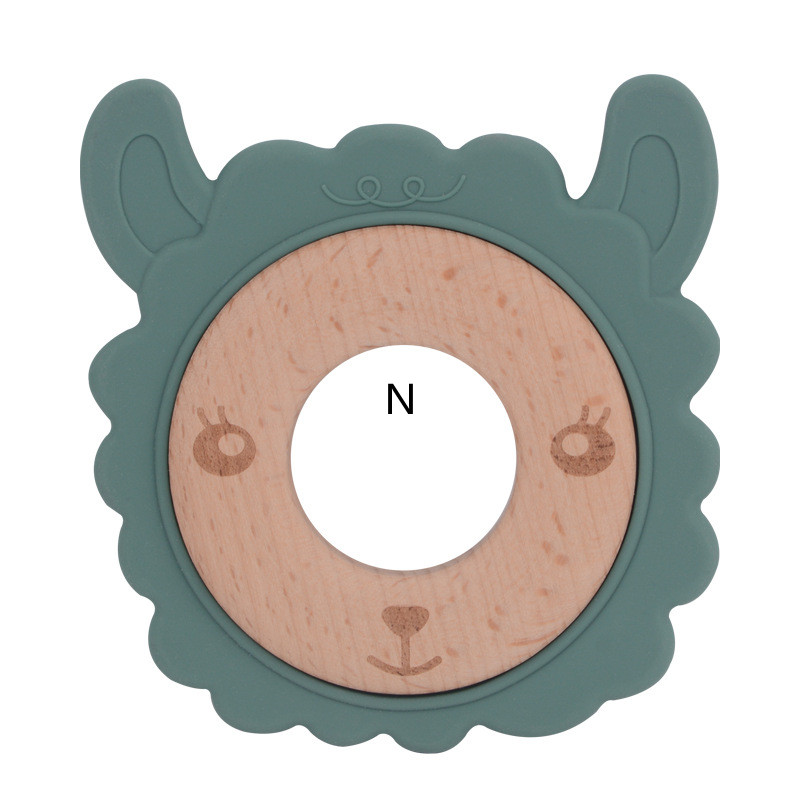 N: oil green alpaca wood ring teether,