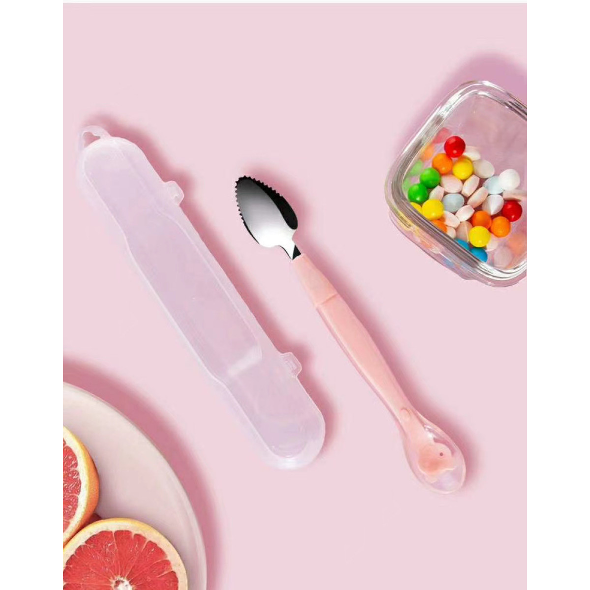 Color: pink puree spoon + box, green puree spoon + box, pink puree spoon, green puree spoon