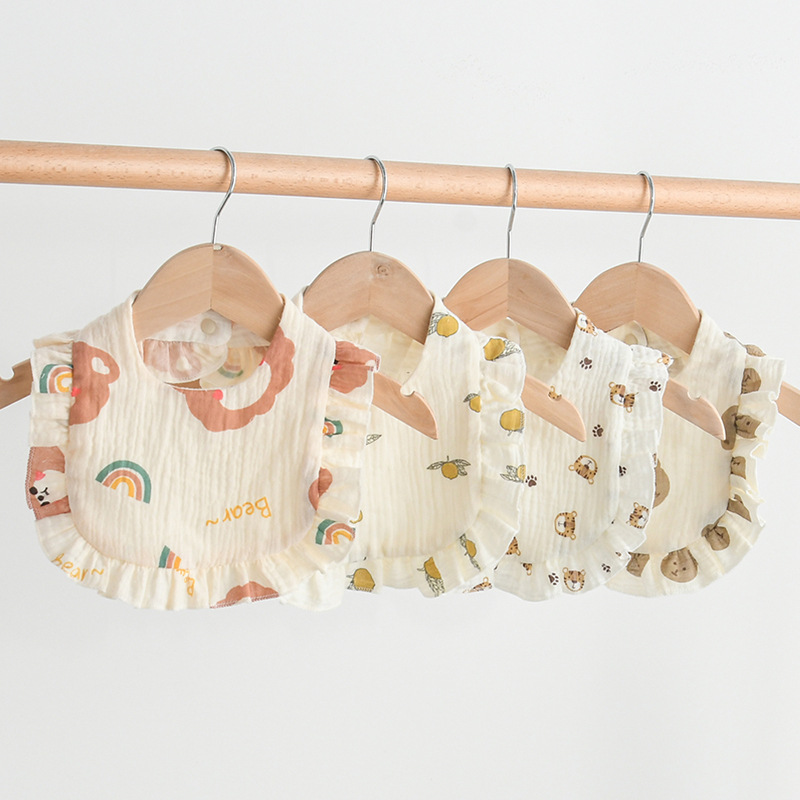 Experience Unmatched Comfort: muslin baby bibs redefine comfort with their premium 100% cotton muslin fabric, ensuring your little one stays cozy and dry during teething, drooling, or feeding sessions. Featuring a flounce-lace border design, the drool bibs add a touch of elegance to your baby's attire