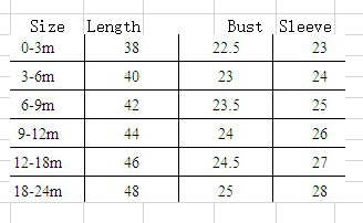 Suitable height: 0-3M, 3-6M, 6-9M, 9-12M, 12-18M, 18-24M