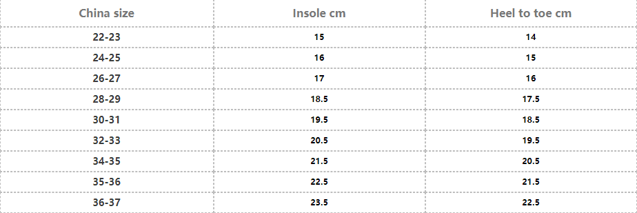 Size:22-23, 24-25, 26-27, 28-29, 30-31, 32-33, 34-35, 36-37