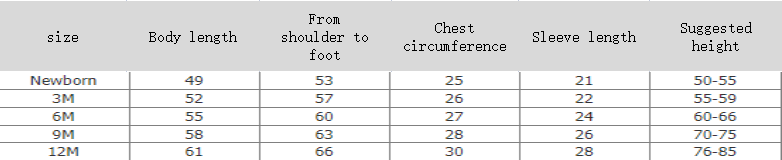 Suitable height: Newborn, 3M,6m,9m,12m