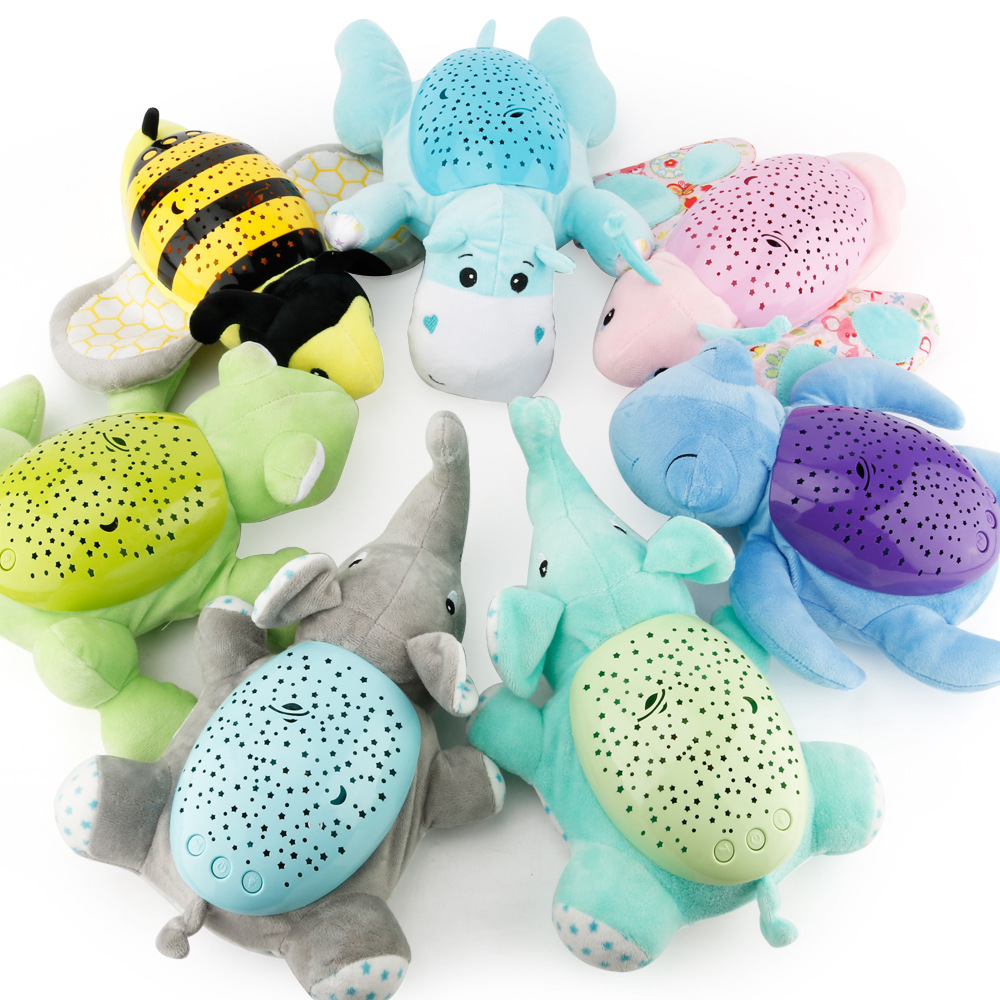 Creative tortoise LED luminous night light plush toys soothing and calming baby toys music star light projector toy baby sleep