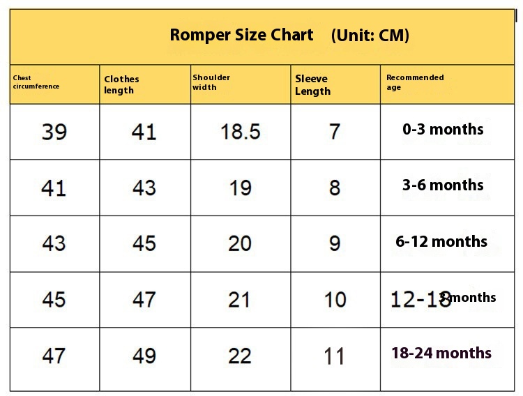 Suitable height: 0-3 months, 3-6 months, 6-12 months, 12-18 months, 18-24 months