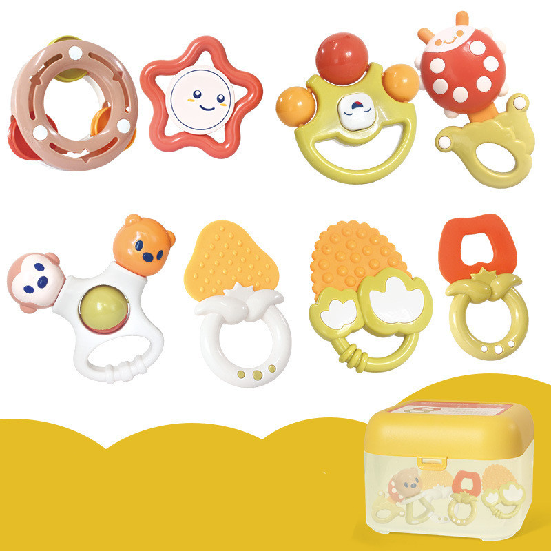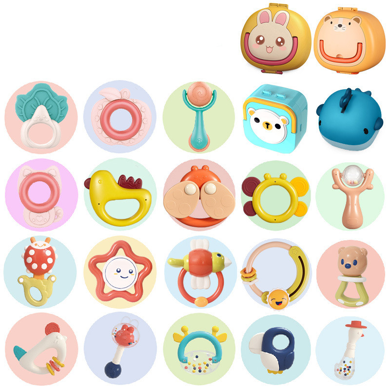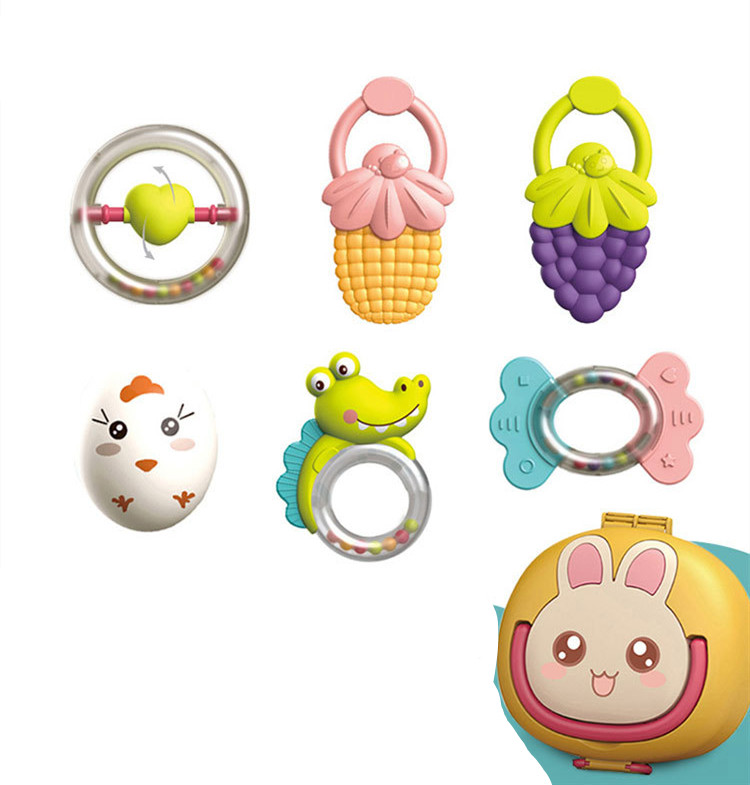 10: 6 sets of rabbit rattles-storage box