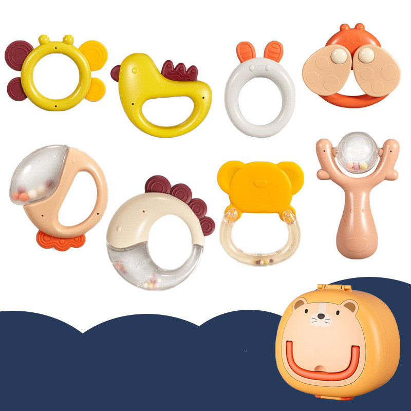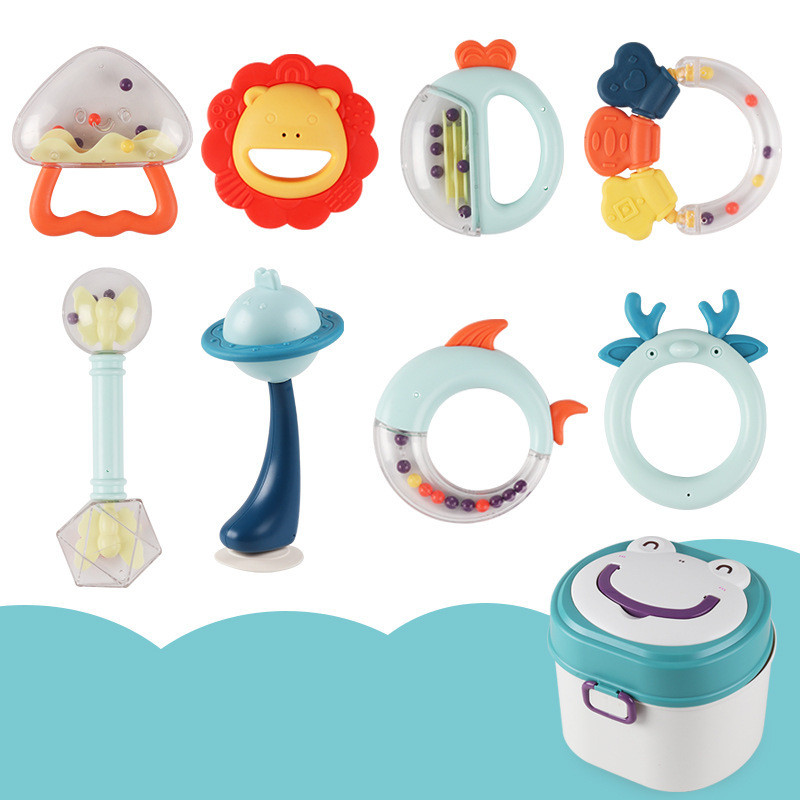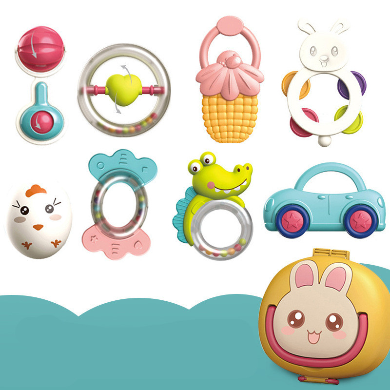 11: 8 sets of rabbit rattles-storage box