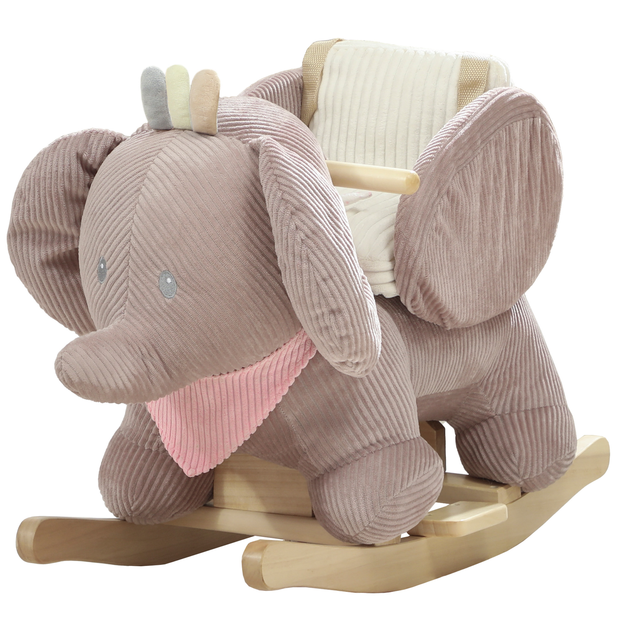 The Qaba kids rocking horse features a lovable elephant design with playful elephant sounds that make every ride more fun and engaging. Covered in soft plush, it provides a cozy wrap-around seat with a secure 3-point safety belt. The stable base, wide seat and easy-grip handles provide excellent stability and balance. Designed for kids, this kids rocking horse offers safe, comfortable and joyful playtime for your little ones.