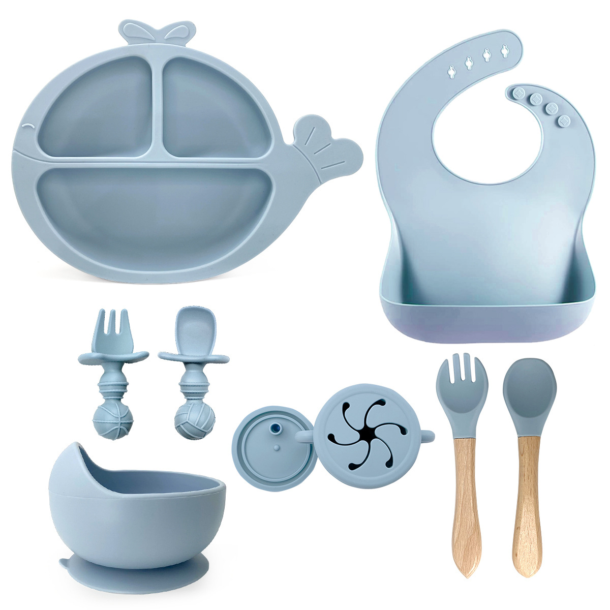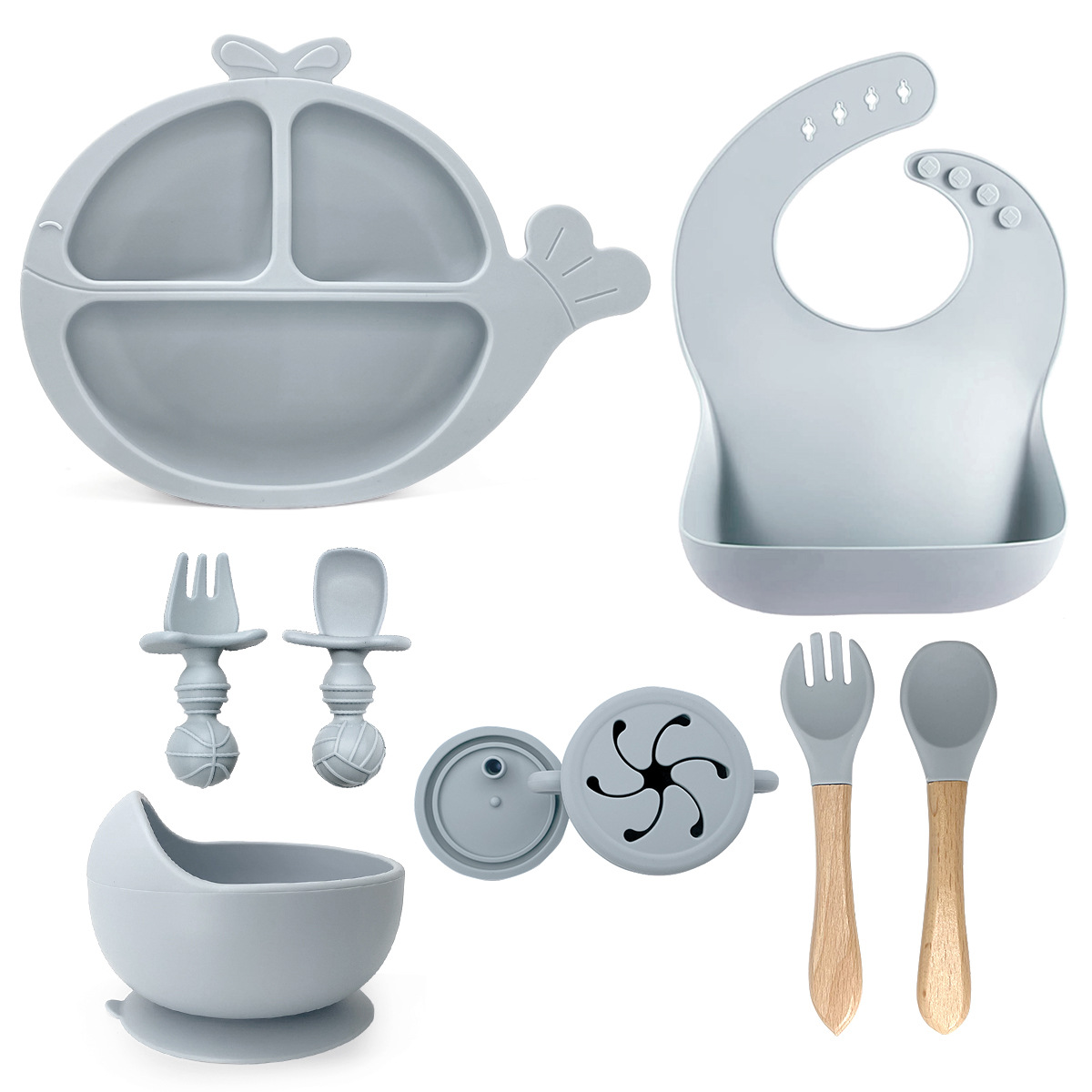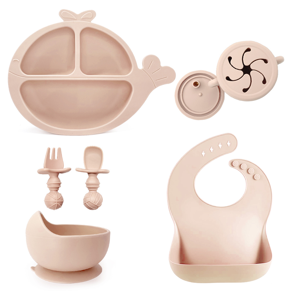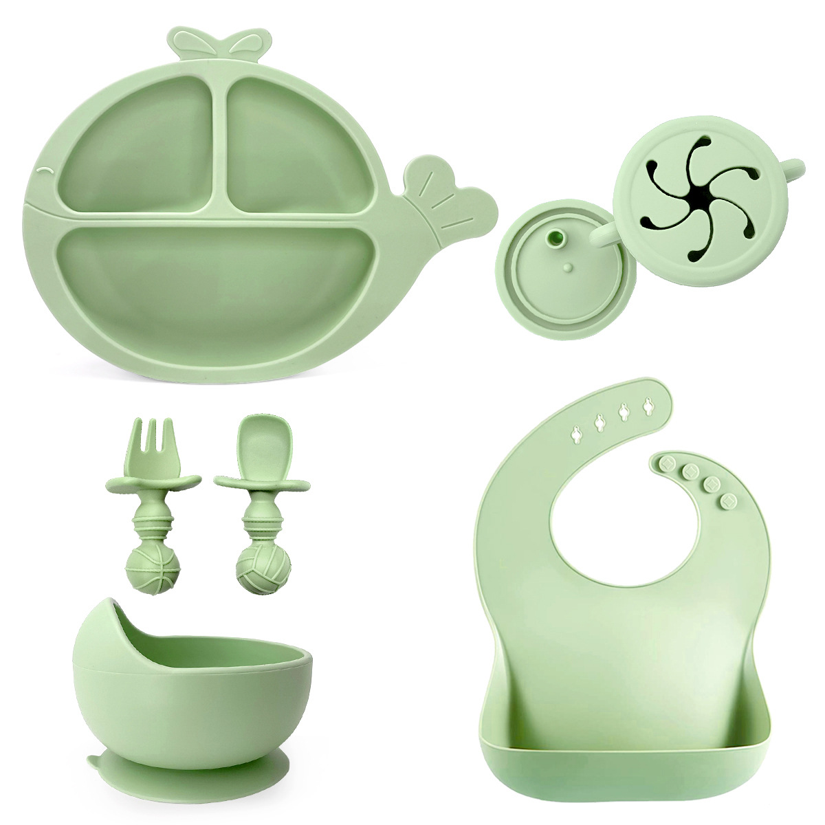 Baby Silicone Compartment Plate Drop-resistant Suit