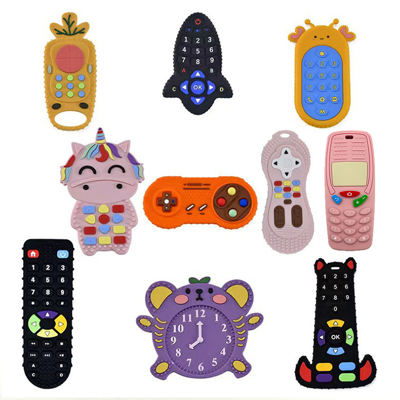 Color: Bee teether, Eva teether teether, radish teether, remote control teether, bear alarm clock teether, GamePad teether, bottle teether, Unicorn teether, rocket teether, basic style teether (pink)