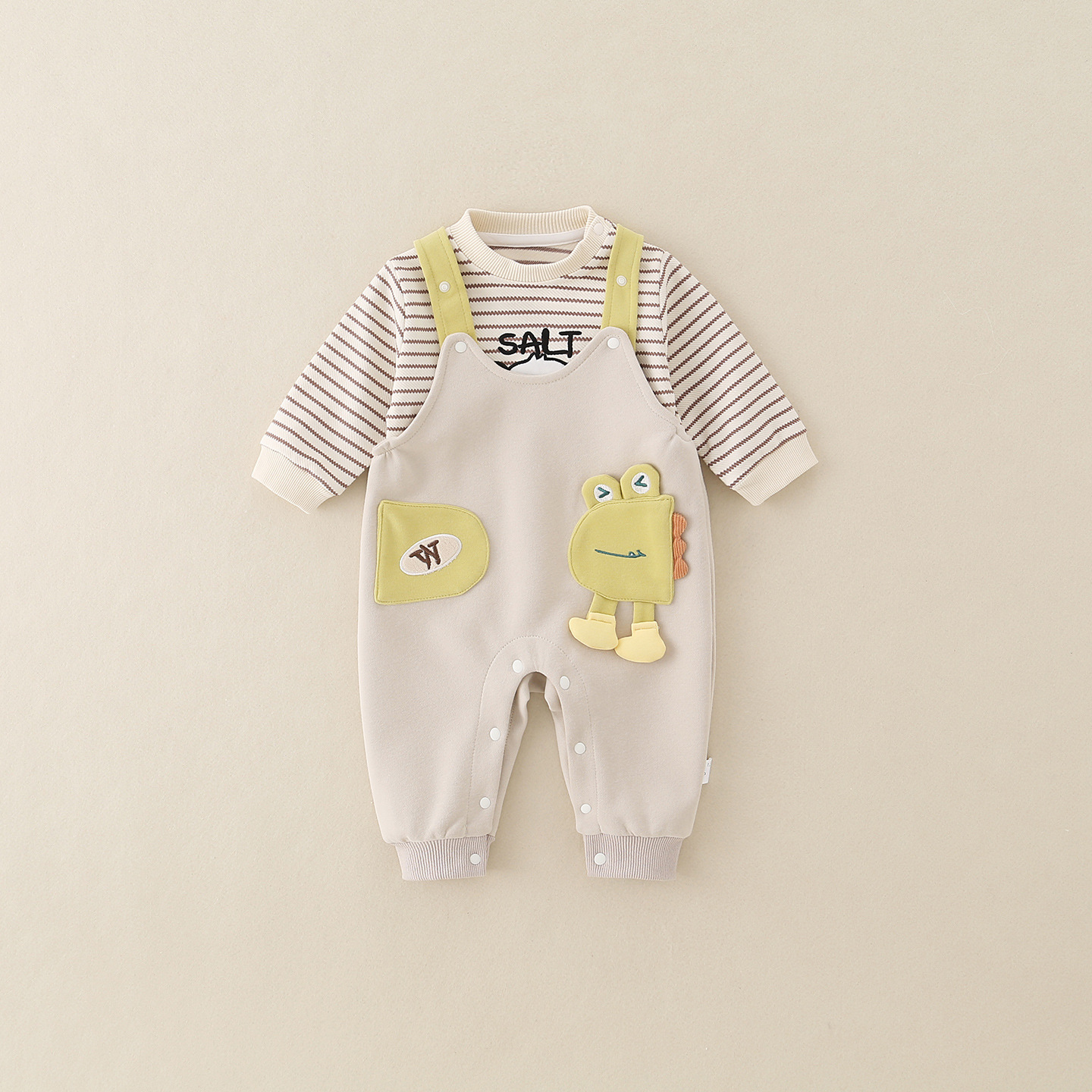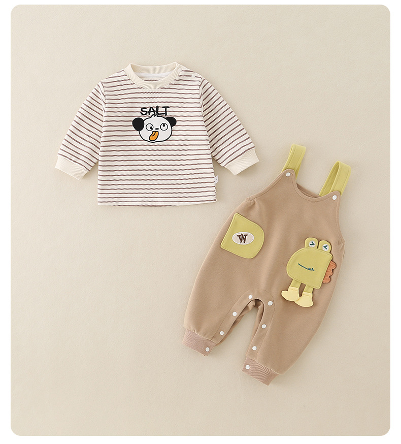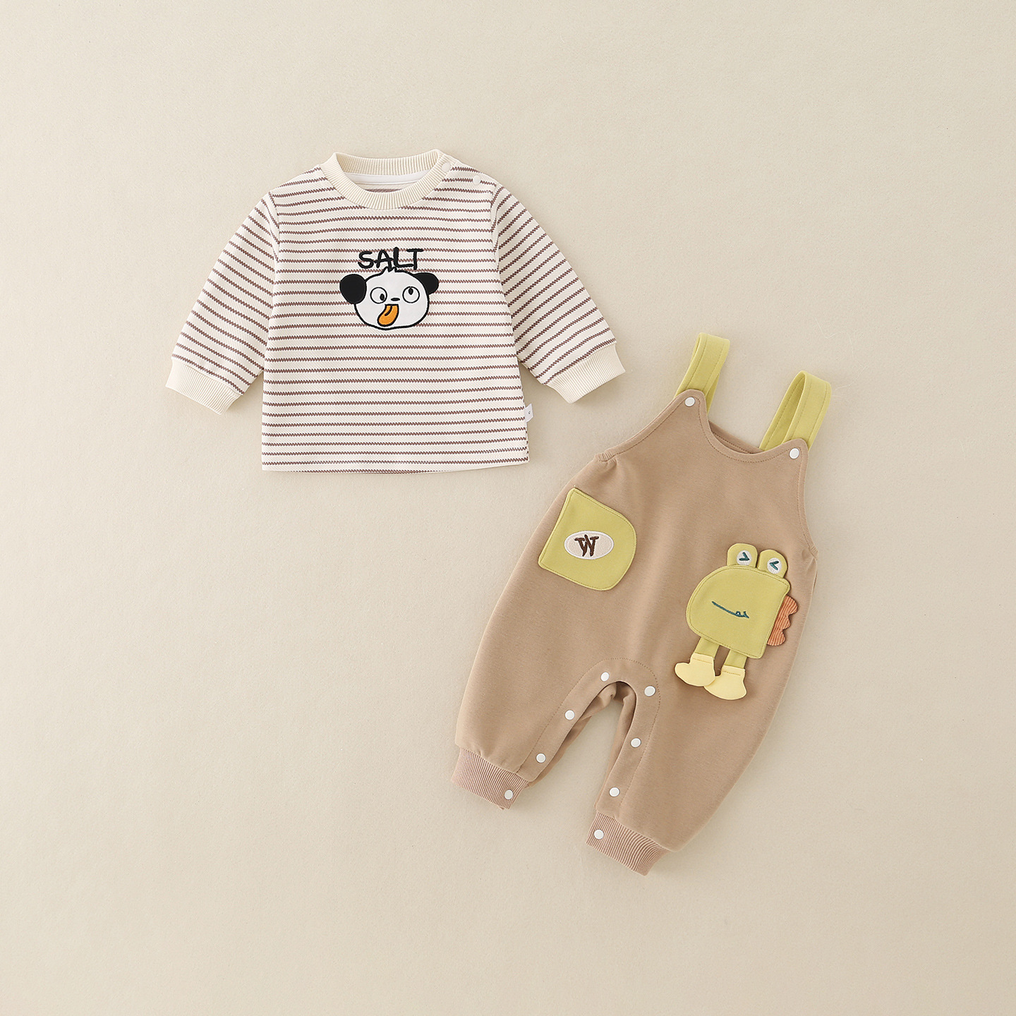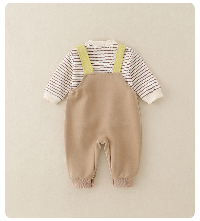 Colors: Apricot (set), Khaki (set), Striped Top, Apricot (onesie), Khaki (onesie)