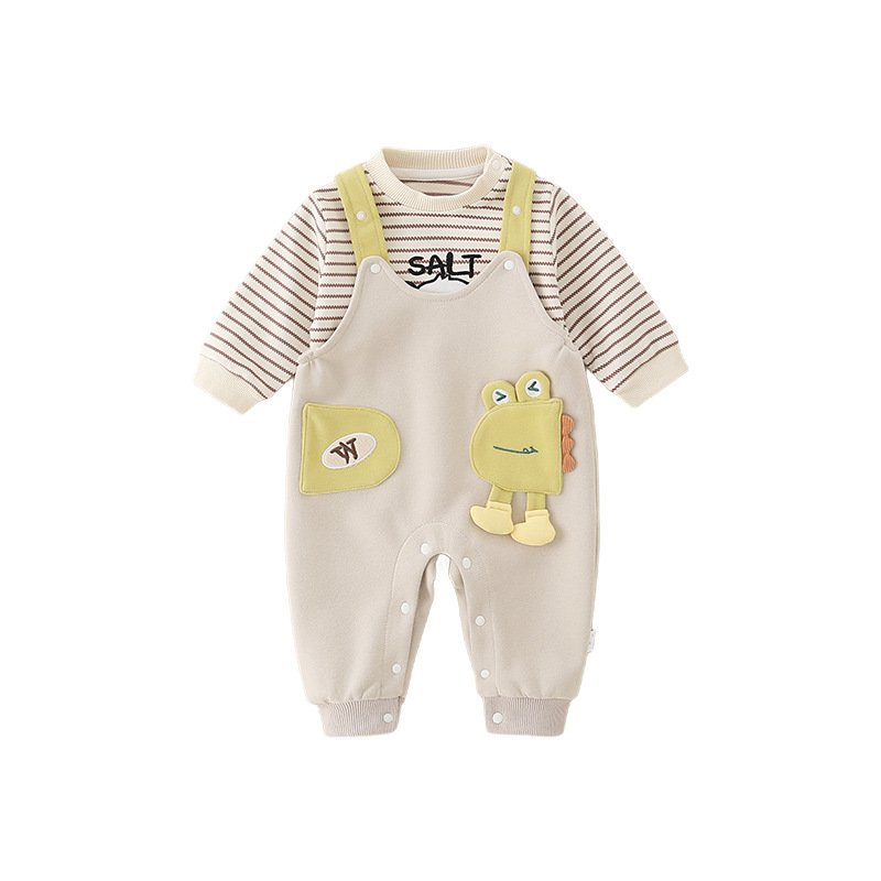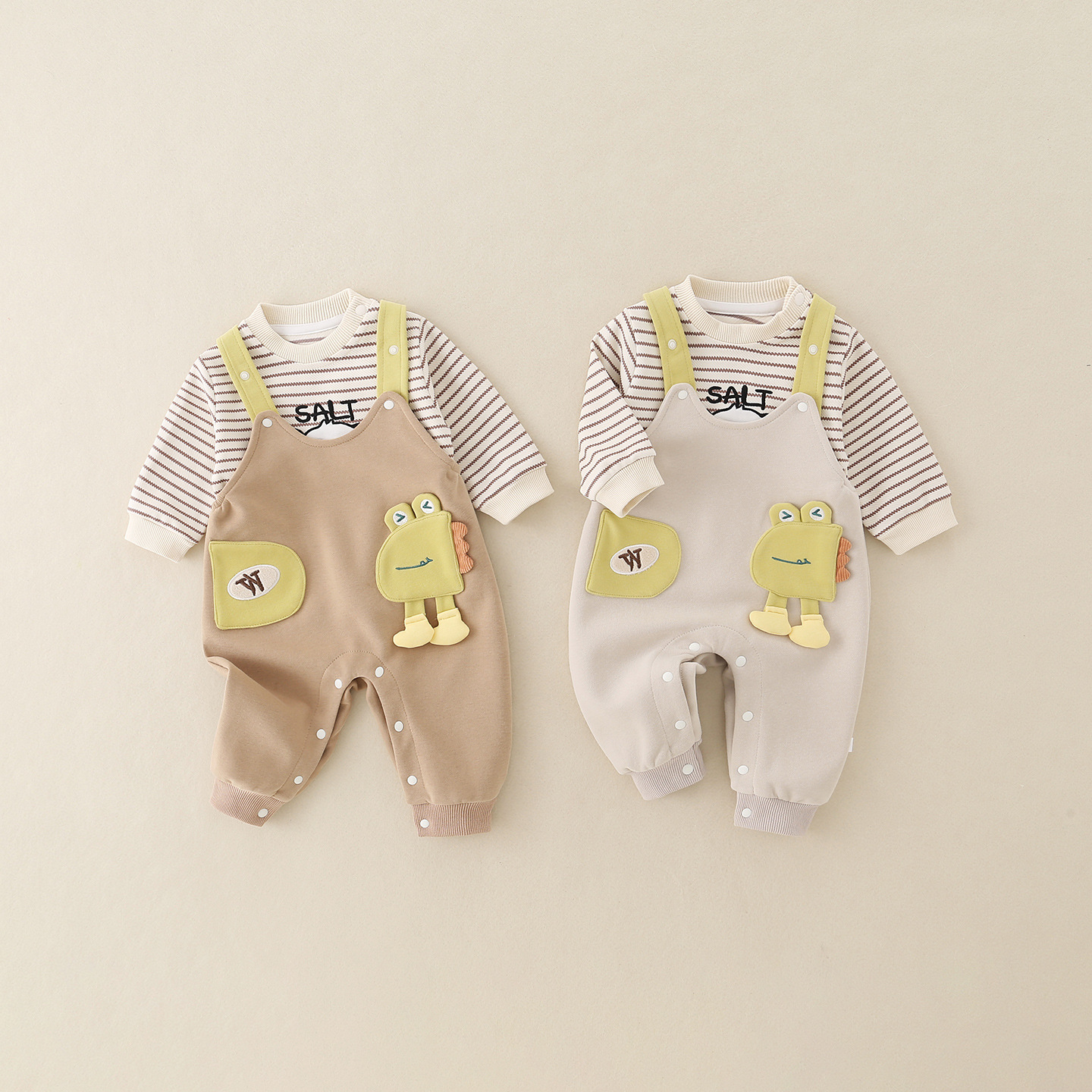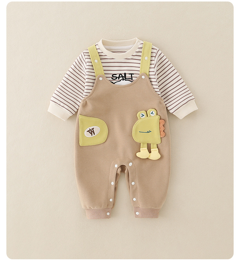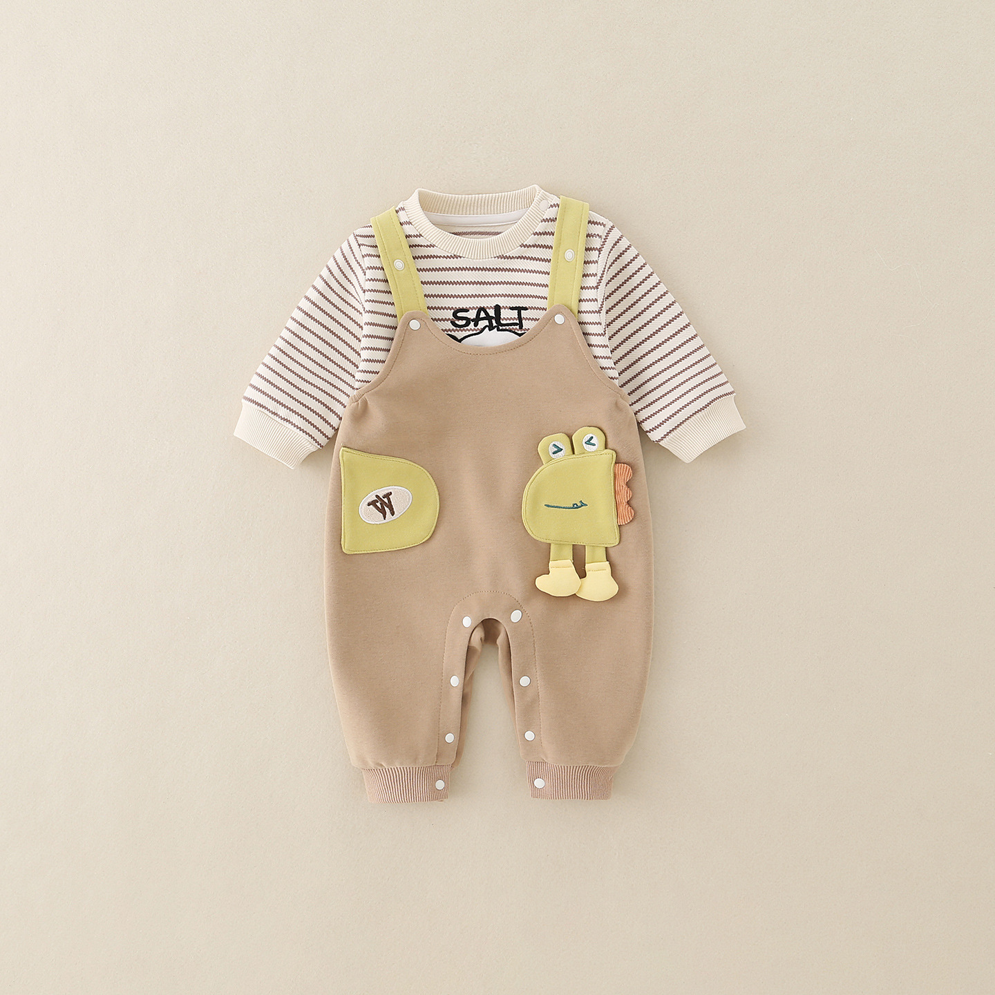 Colors: Apricot (set), Khaki (set), Striped Top, Apricot (onesie), Khaki (onesie)