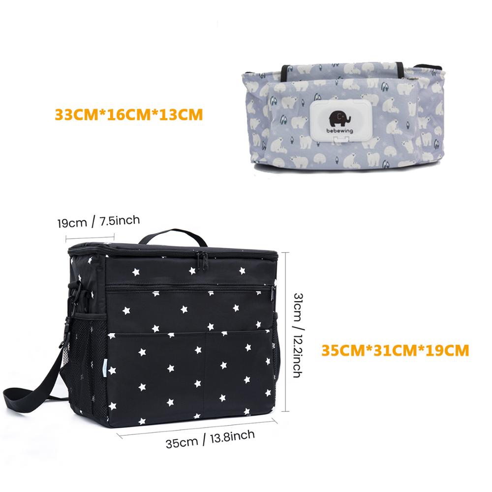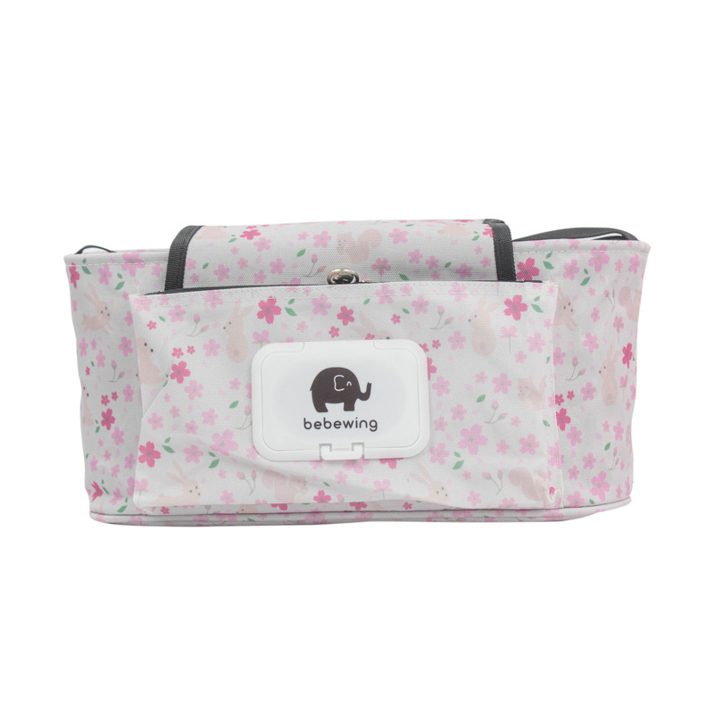 Baby diapers, food, clothes, drinks, snacks, books, toys, keys, phones, etc.