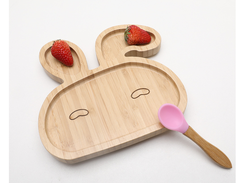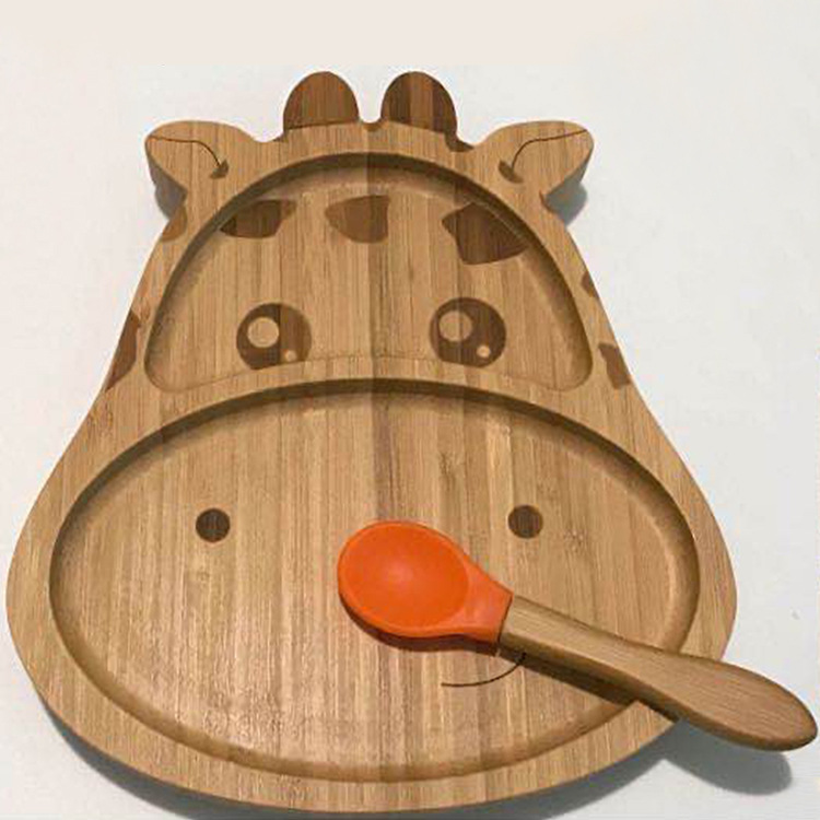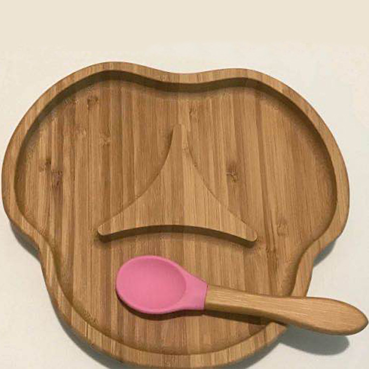 Baby Sucker Bowl Bamboo Cartoon Children'S Disk With Suction Cup Silicone Spoon Set Children'S Dinner Plate Bamboo Children'S Bowl