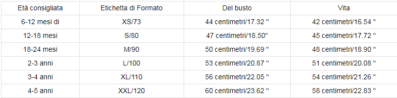 XS (12-20 kg), S (15-25 kg), M (20-30 kg), L (25-35 kg), XL (30-40 kg), 2XL (40-50 kg), 3XL ( 50-60 kg)