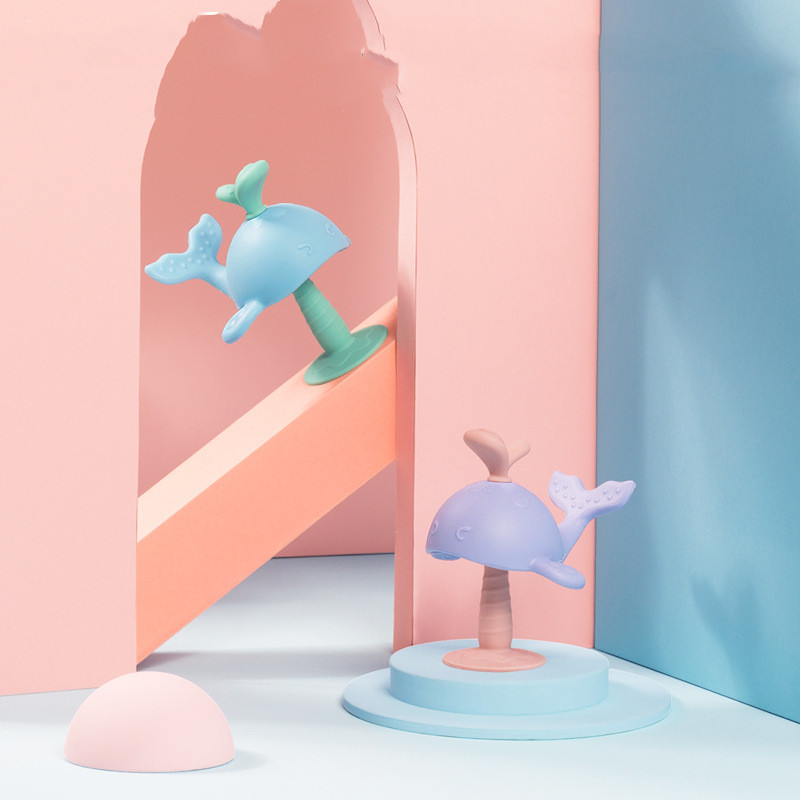 Teething toys for baby whales are specially designed for teething babies. High-quality food-grade silicone ensures that these baby teethers are flexible and healthy enough that babies can chew or pull with their mouths to relieve gum pain and itching.