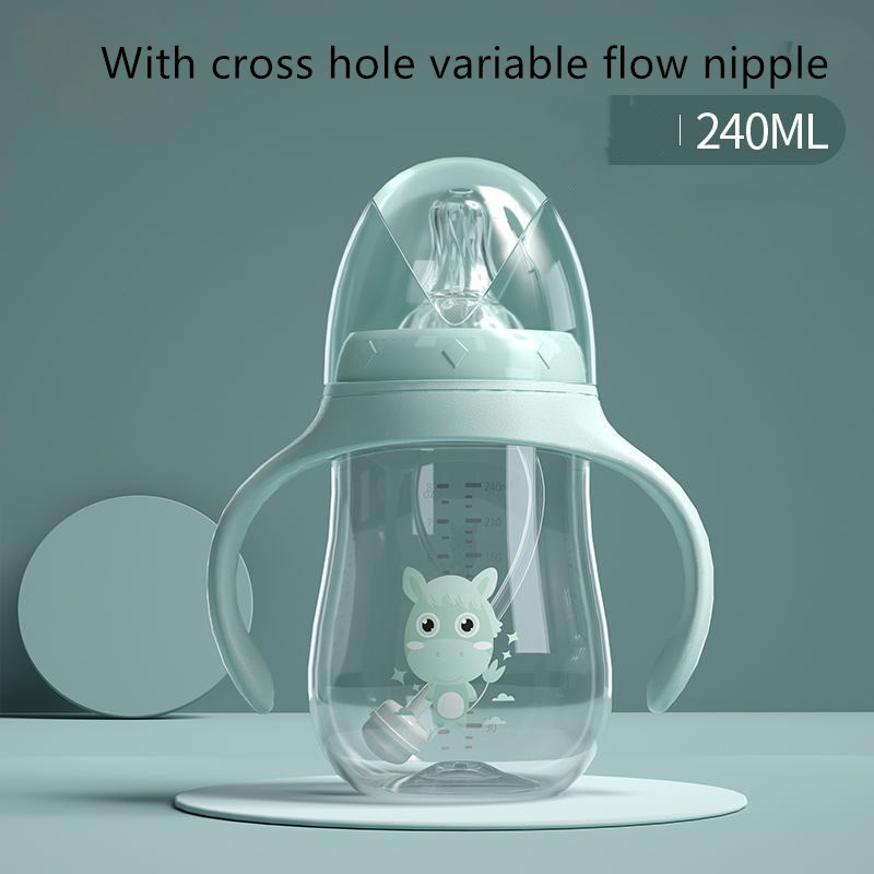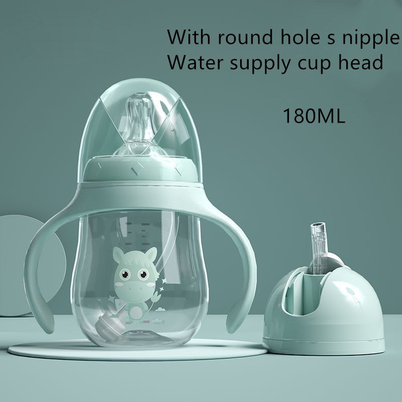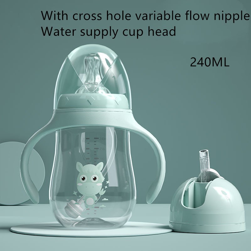 Baby wide caliber baby bottle, baby water cup, straw cup, double purpose baby bottle, plastic drop proof and choke proof cup