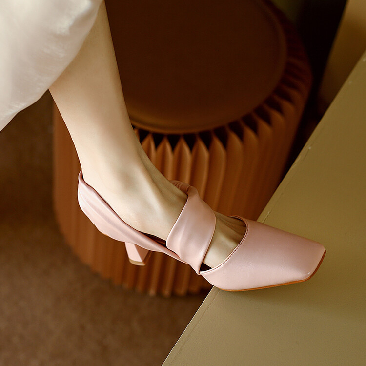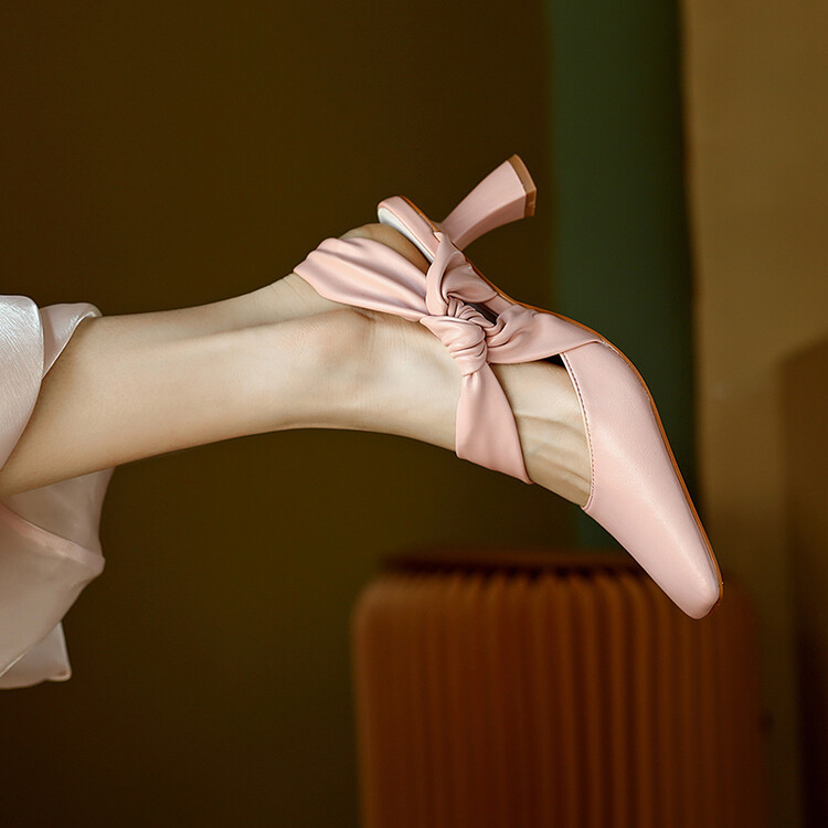 Back Empty Sandals Bow Fashion Casual High Heels Large Size Women's Shoes