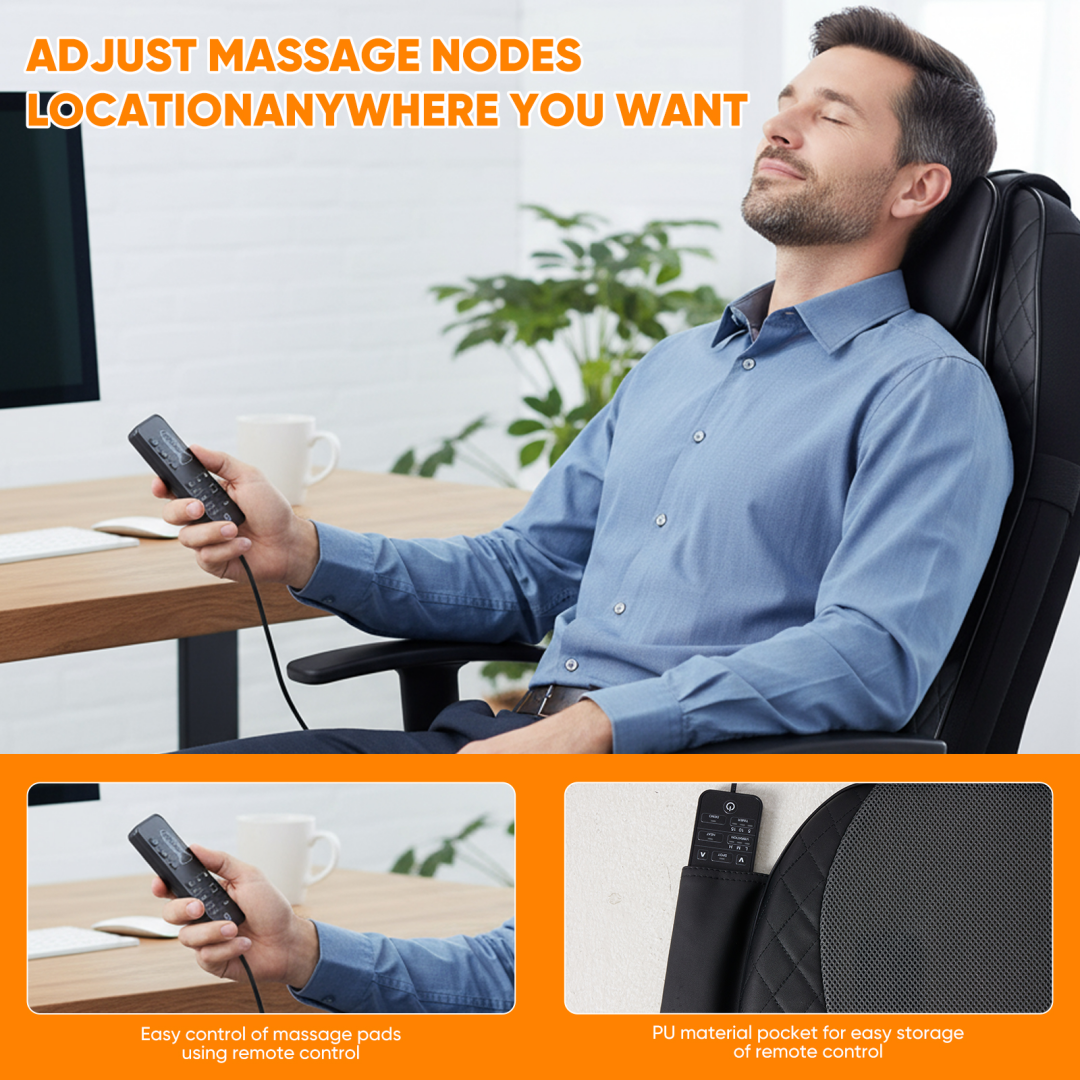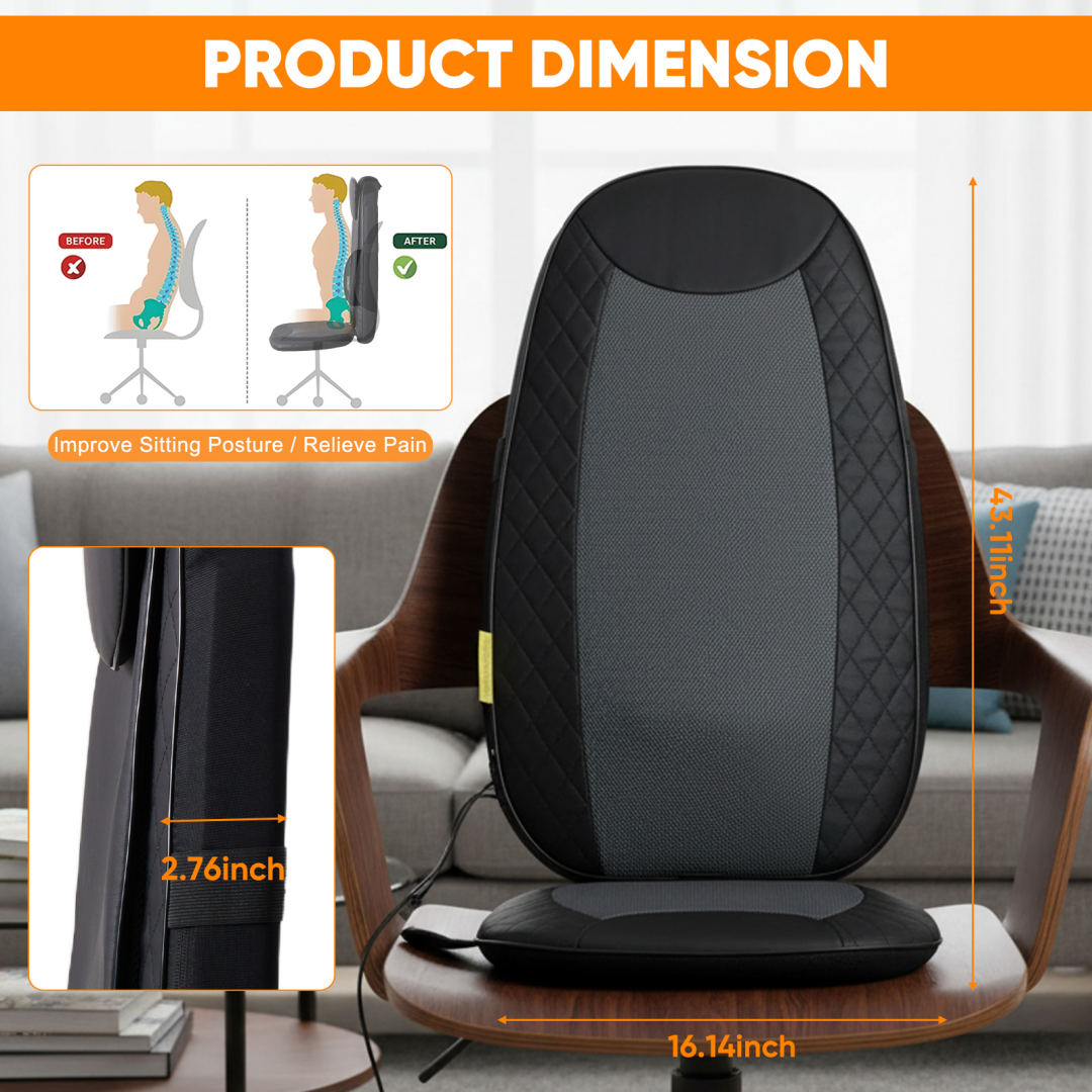 Back Cushion Heating – Heating Pad with Massager! The built-in back cushion heating warms your back while relaxing muscles in your back, waist, and shoulders. It pairs seamlessly with the kneading nodes (you can use heat alone too!) and fits the bill for a cozy massaging heating pad.
