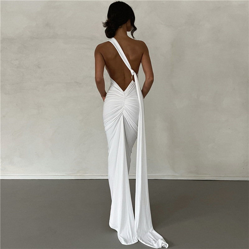 Popular elements: no back lace-up pleated