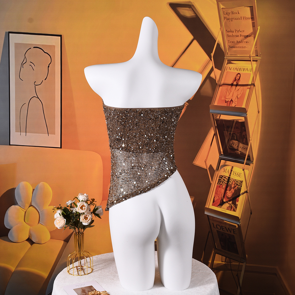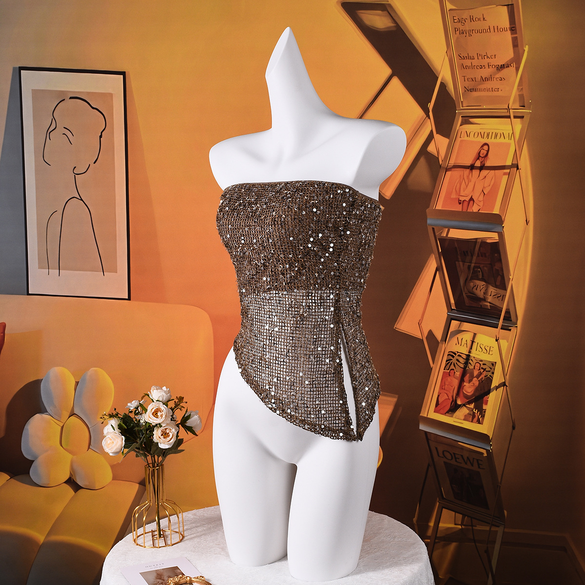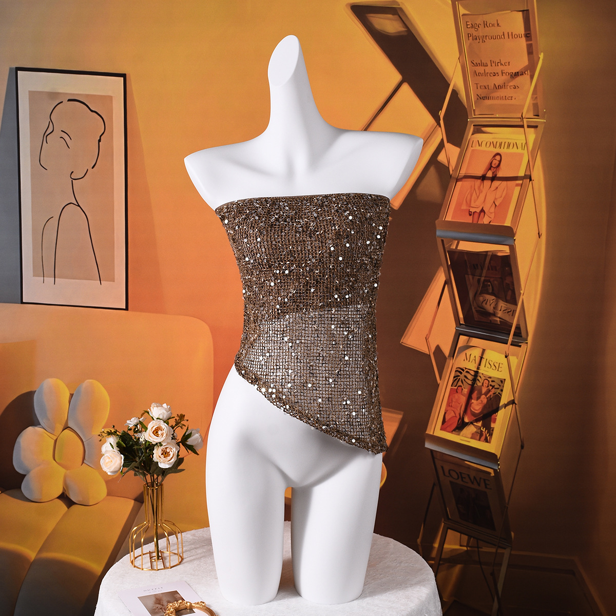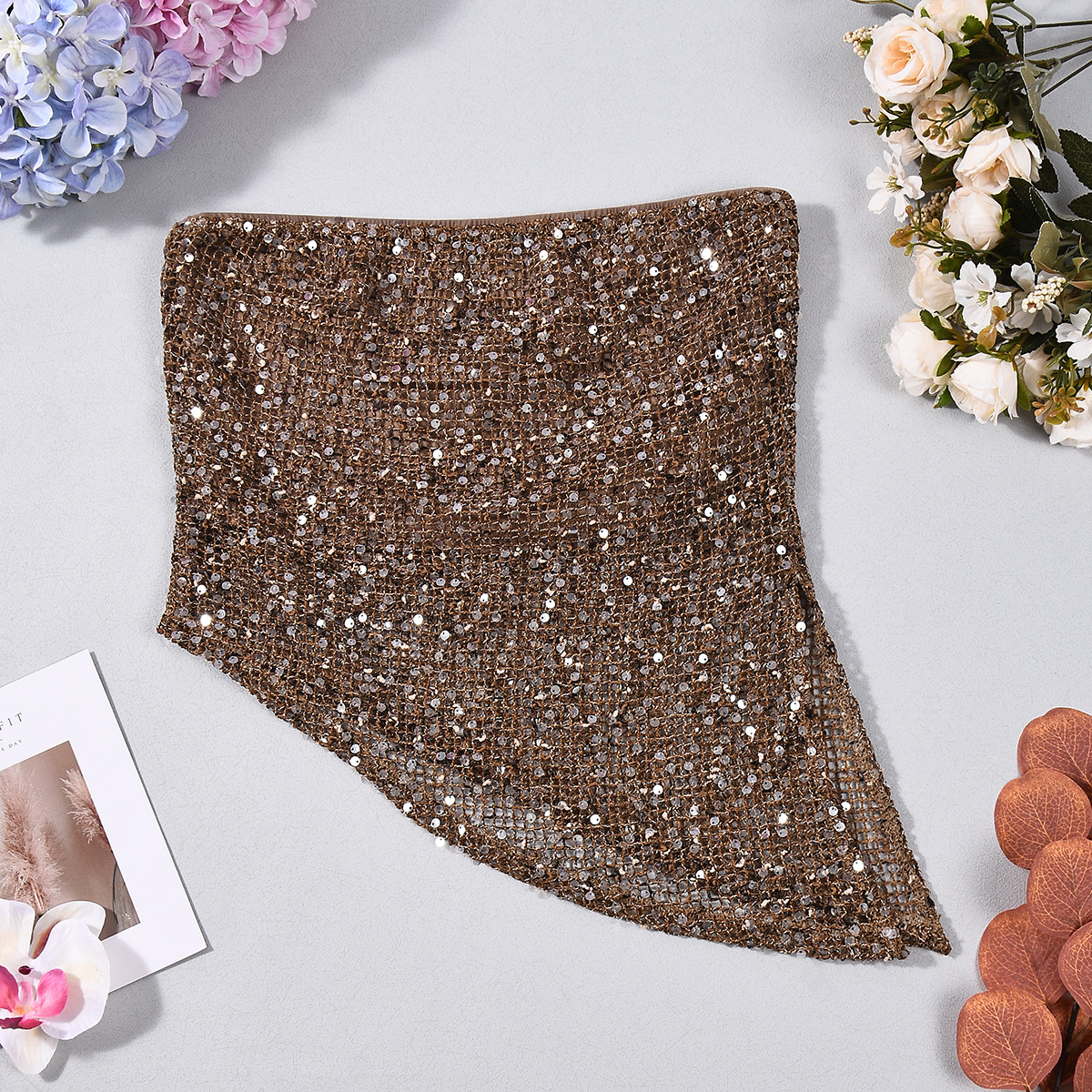Backless Irregular European And American Style Sequined Tube Top