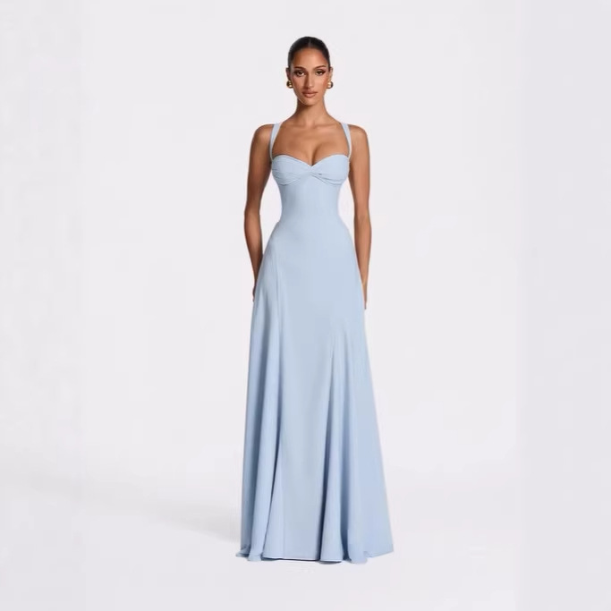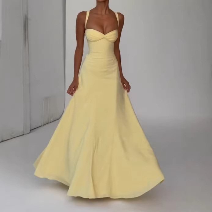 Backless Solid Color Asymmetrical Strap Long Dress