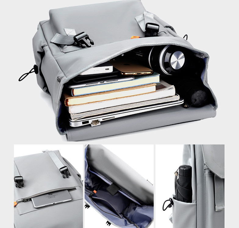 The internal structure of the bag: zipper pocket, document pocket, computer pocket