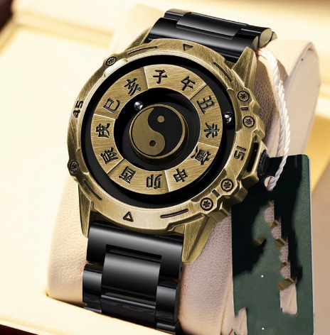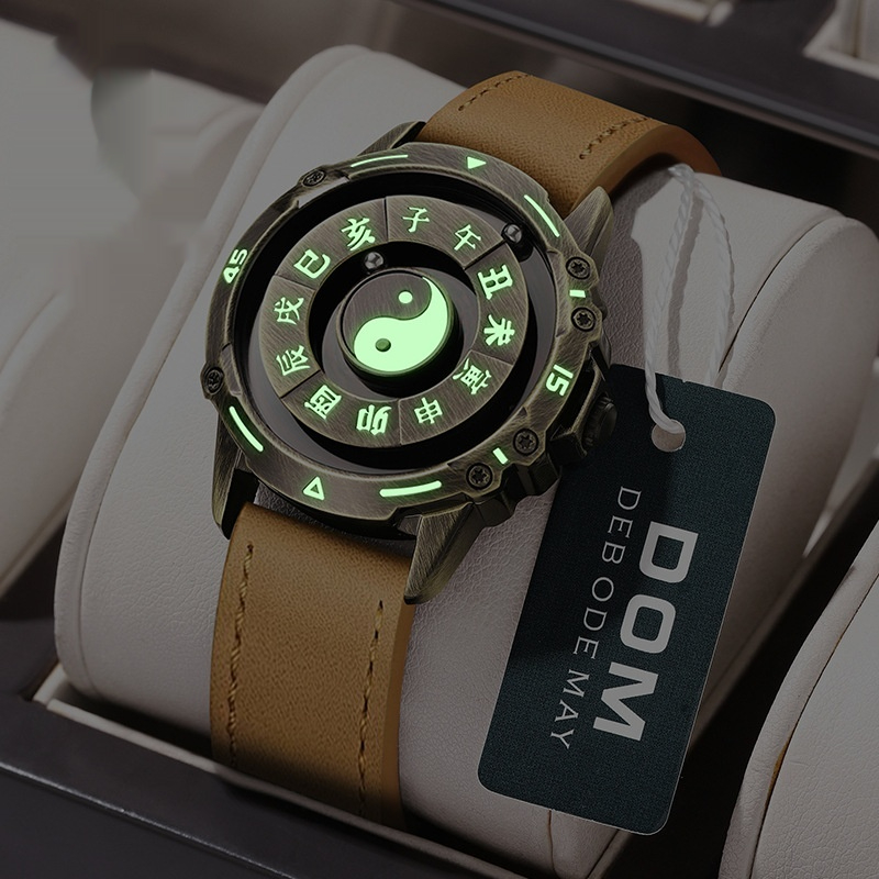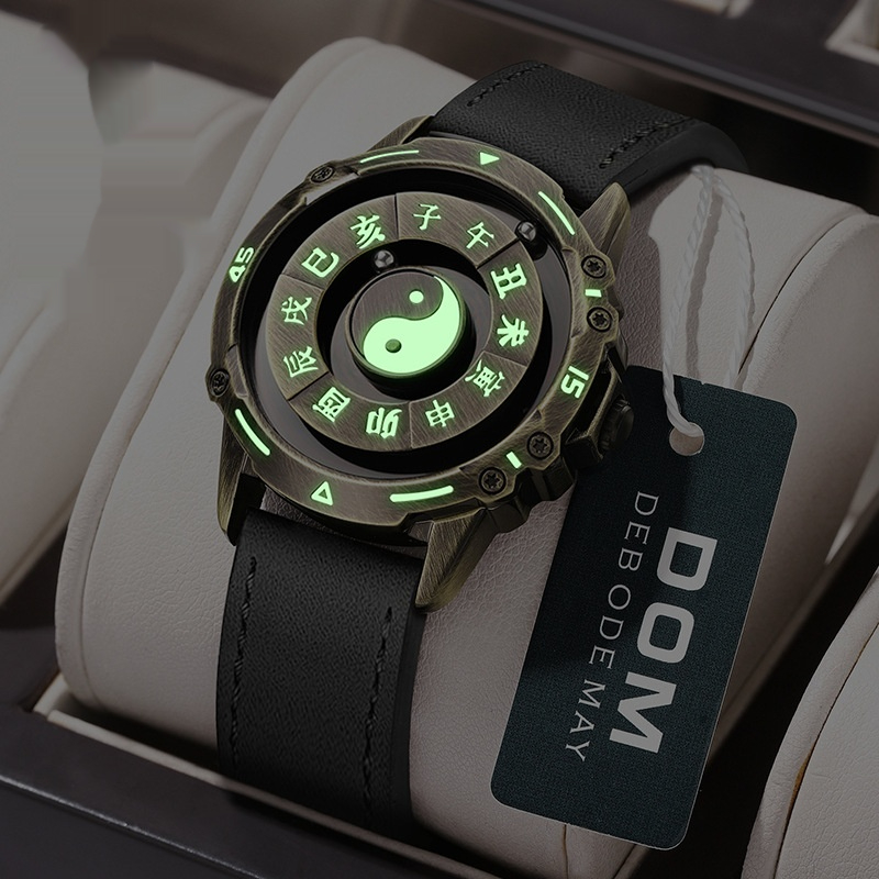 Color: Black dial with steel band (bare watch), black dial with black leather strap (bare watch), black dial with yellow leather strap (bare watch), bronze dial with steel band (bare watch), bronze dial with black leather strap (bare watch), bronze dial with yellow leather strap (bare watch), black dial with steel band in a large black box, black dial with black leather strap in a large black box, black dial with yellow leather strap in a large black box, bronze dial with steel band in a large black box, bronze dial with black leather strap in a large black box, bronze dial with yellow leather strap in a large black box, black case with steel band (luminous version), black case with light-black leather strap (luminous version), black case with brown leather strap (luminous version), copper case with steel band (luminous version), copper case with light-black leather strap (luminous version), copper case with brown leather strap (luminous version)