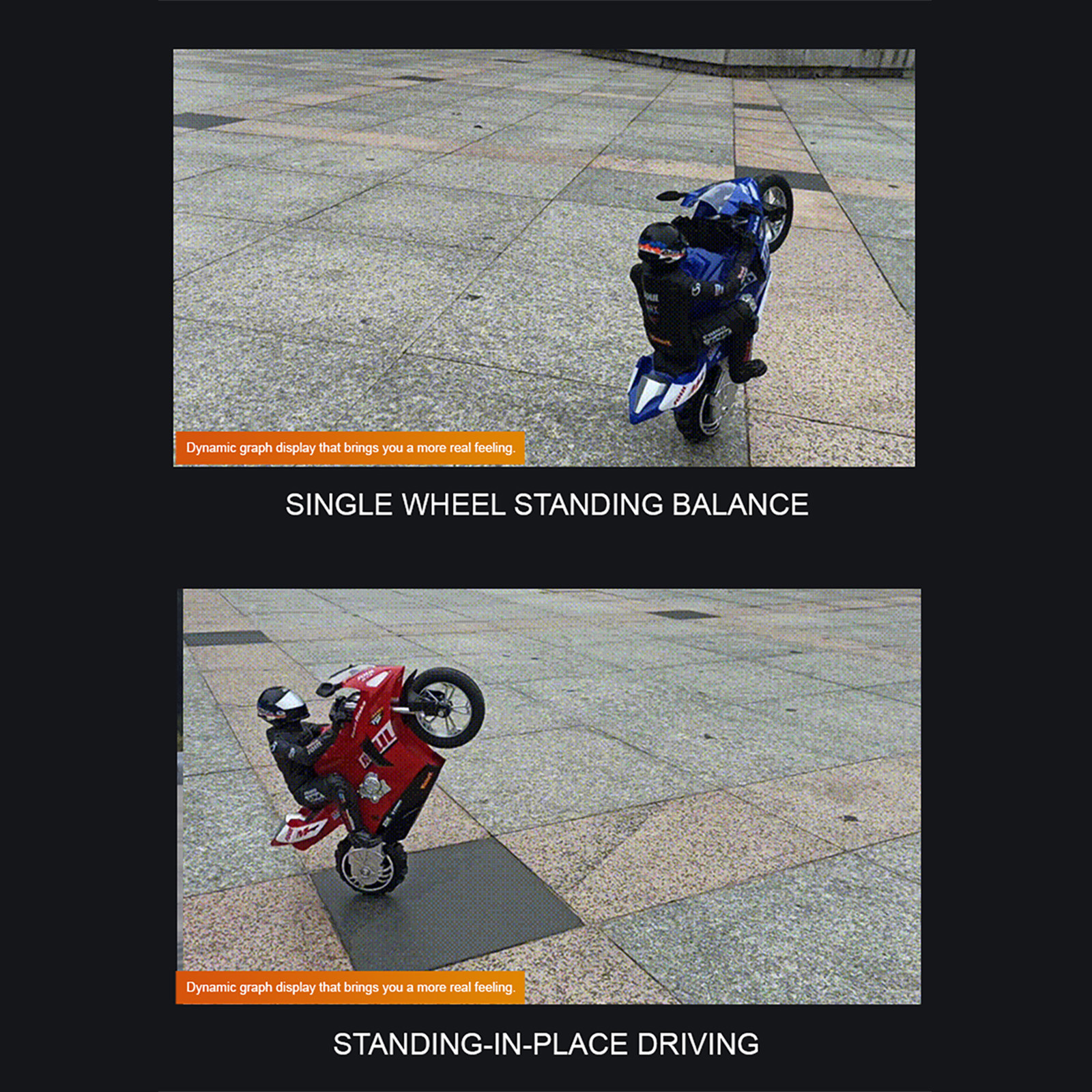 Product functions: forward, backward, left turn, right turn, indoor mode, outdoor mode, terrain switching, U-turn in place, self-stabilizing balance, 360-degree drift, stunt single-wheel standing and other functions. The traction control of the rear rubber balance wheel can be self-stabilized and balanced, subverting the traditional remote control motorcycle toy. Using traction smart wheels, 16 rubber side wheels can achieve in-situ 360° drift, single-wheel standing sideways movement, full of sense of science and technology. Detachable design for motorcycle riders.