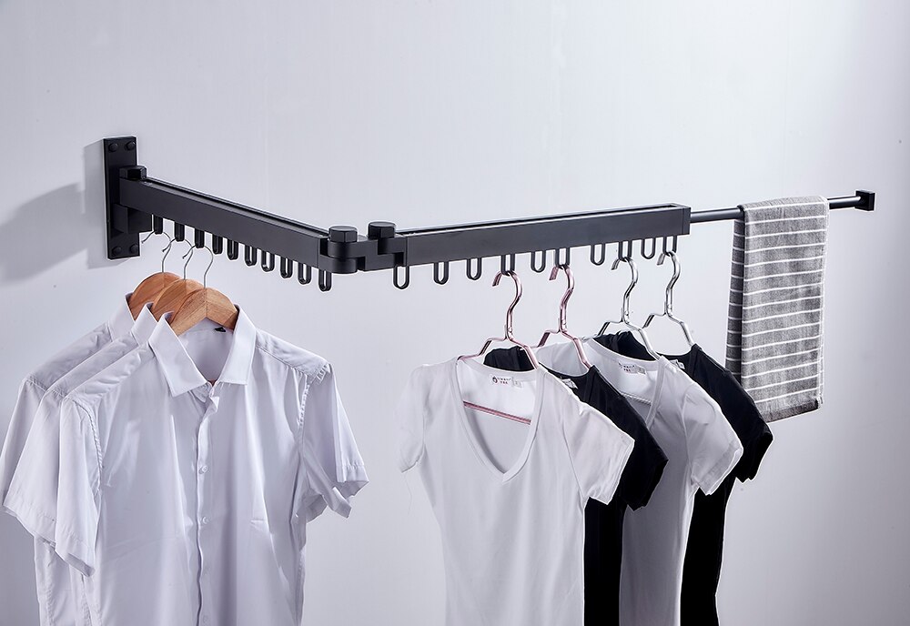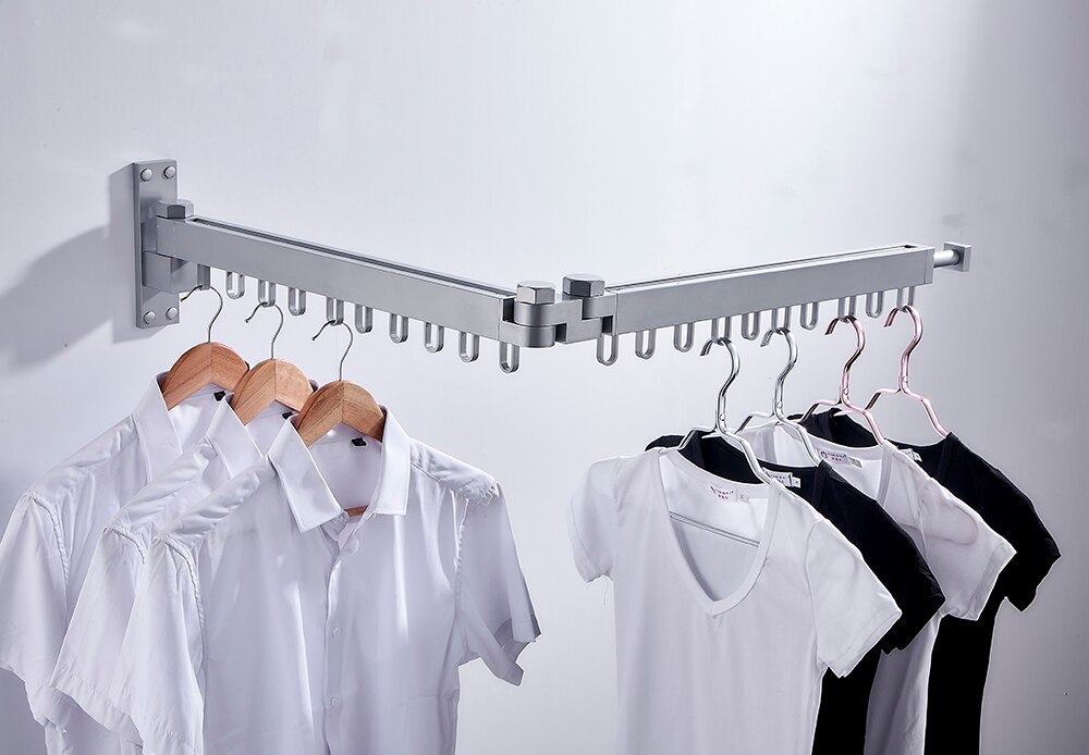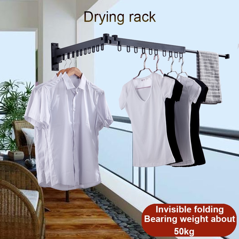 Balcony folding telescopic clothes rack