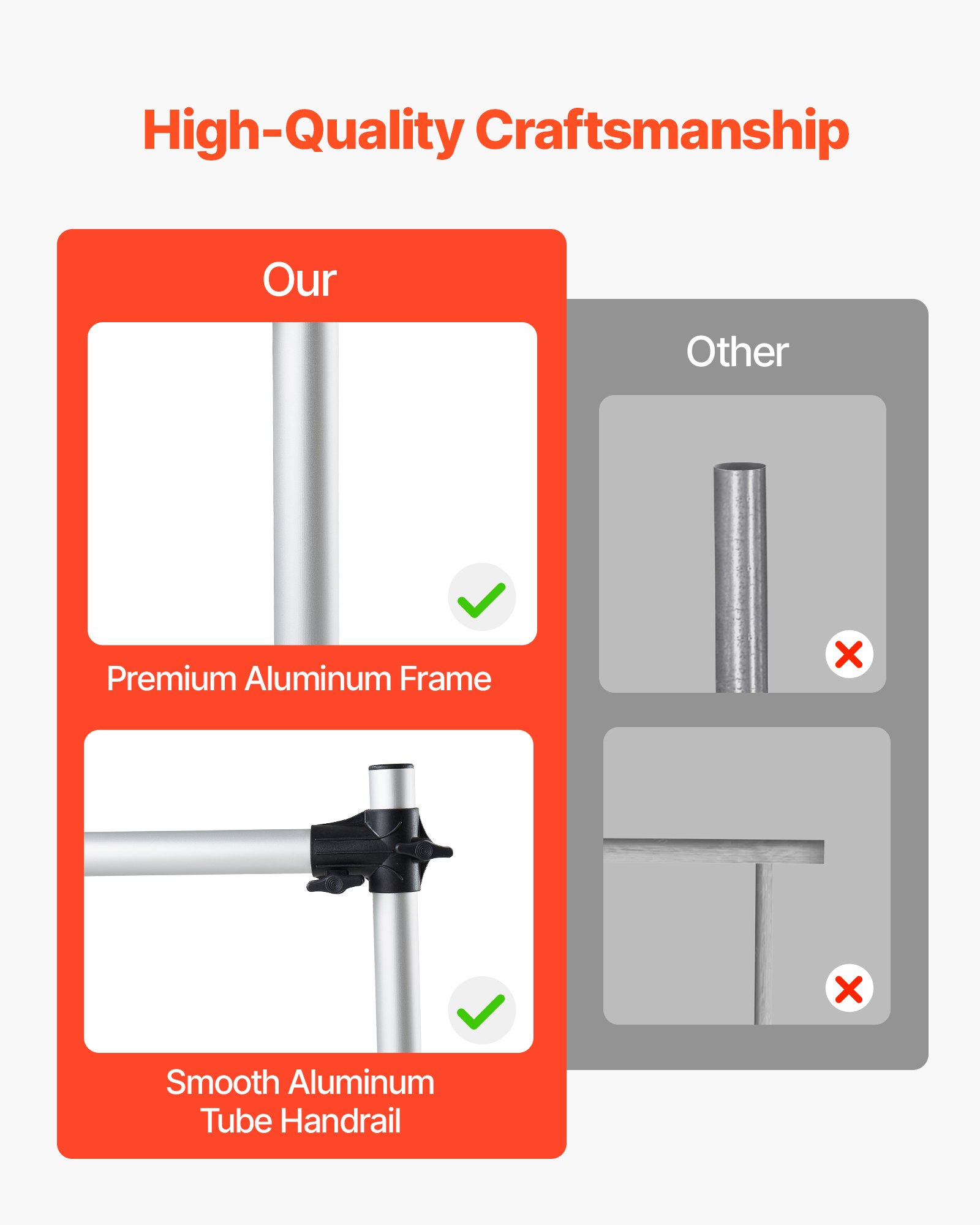 High-Quality Material: The ballet barre is made with a aluminum frame, powder-coated surface, and high-quality fasteners, supporting up to 300 lbs. Equipped with non-slip foot pads to ensure stability while stretching and strengthening core muscles