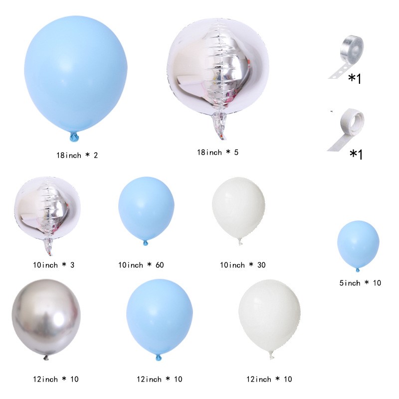 10 12-inch metallic silver, 10 12-inch blue, 10 12-inch white