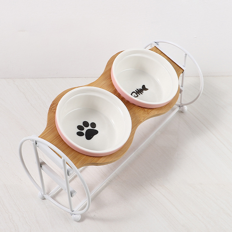 Style: Style 1 white fish bone bowl + white paw print bowl + black lifting frame, style 2 pink fish bone bowl + pink paw print bowl + black lifting frame, style 3 yellow fish bone bowl + yellow paw print bowl + black lifting frame, Style 4 blue fish bone bowl + blue paw print bowl + black lifting stand, style 5 white fish bone bowl + white paw print bowl + white lifting stand, style 6 pink fish bone bowl + pink paw print bowl + white lifting stand, Style 7 yellow fish bone bowl + yellow paw print bowl + white lifting frame, style 8 blue fish bone bowl + blue paw print bowl + white lifting frame