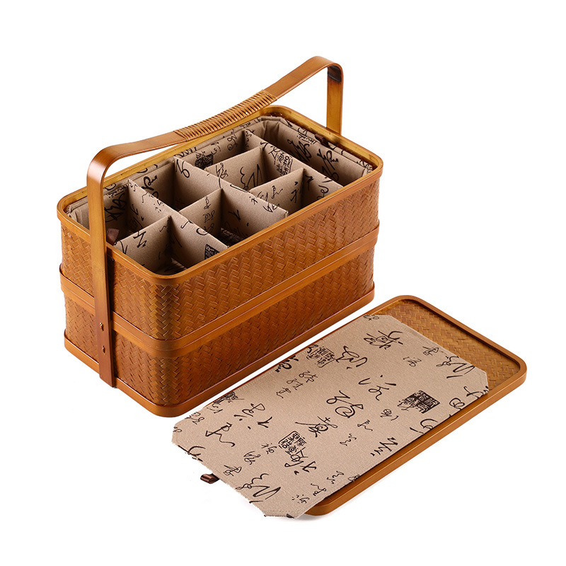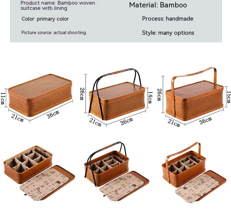 Size: single-layer box, single-layer box (including lining), Pu bamboo single-layer portable box, Pu bamboo single-layer portable box (including lining), Pu bamboo double-layer portable box, puzhu double layer portable box (including one lining), black bamboo handle lifting box, black bamboo handle lifting box (including lining), rotating portable box, rotating portable box (including lining), single lining (length 34.5 width 19.5 height 8CM