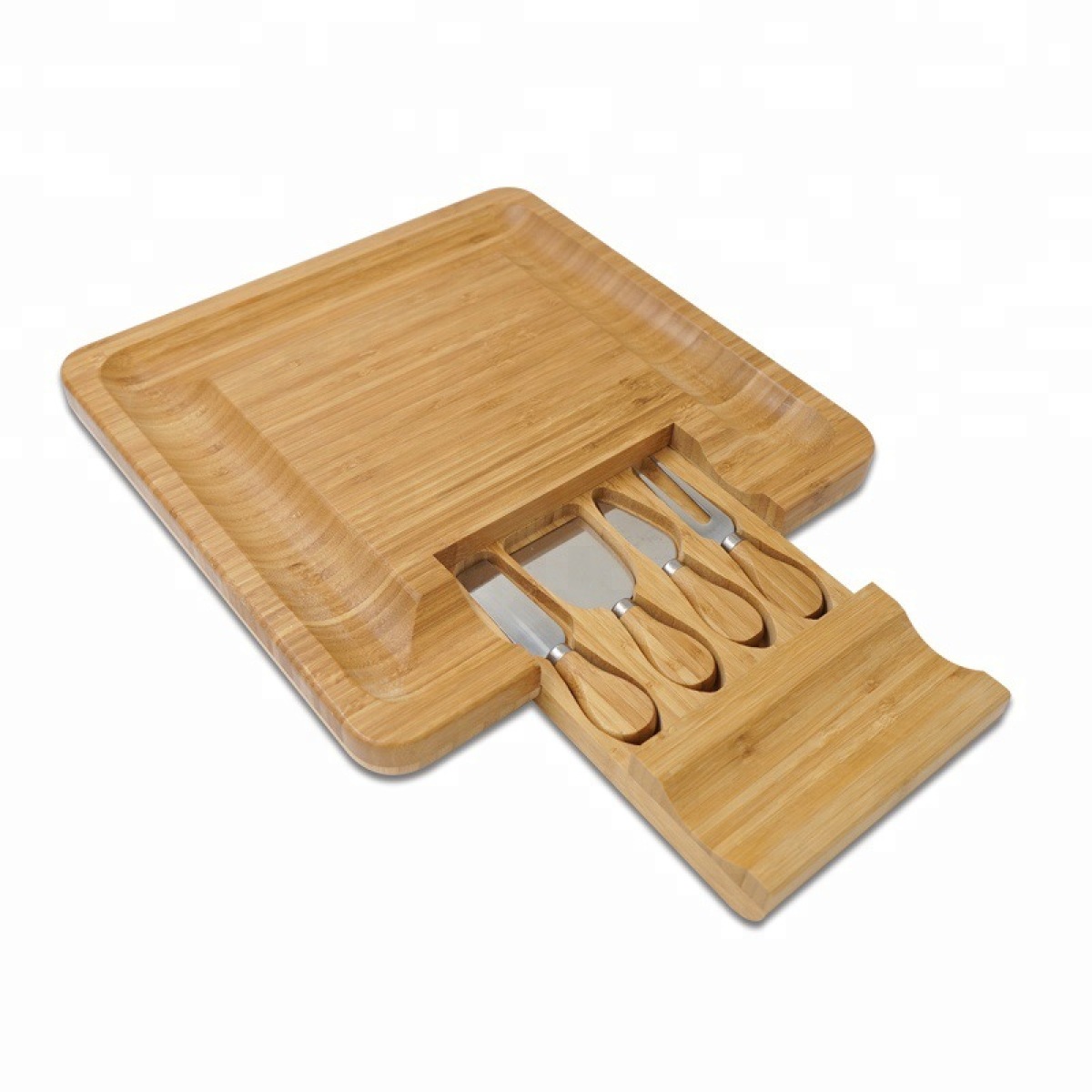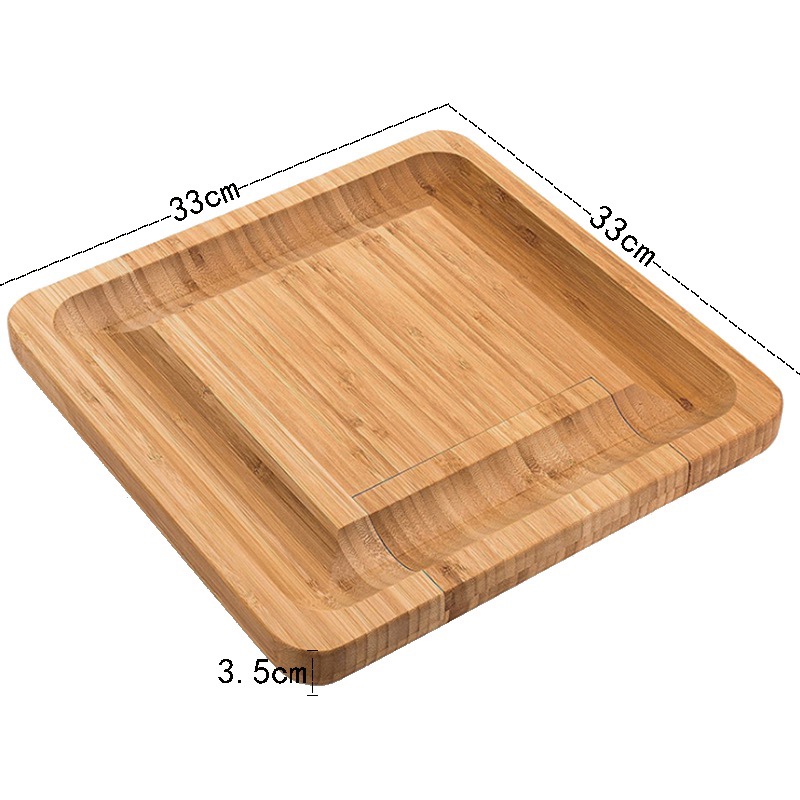 Material: bambooShape: squareSize: 33*33*3.5Packing type: single packColor classification: cheese board (including knives) Manual: Yes