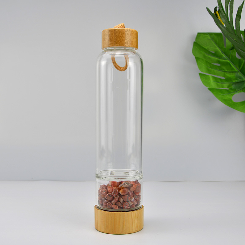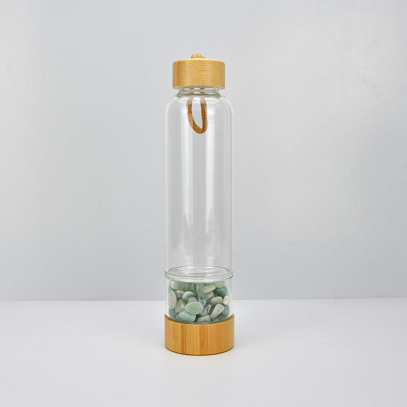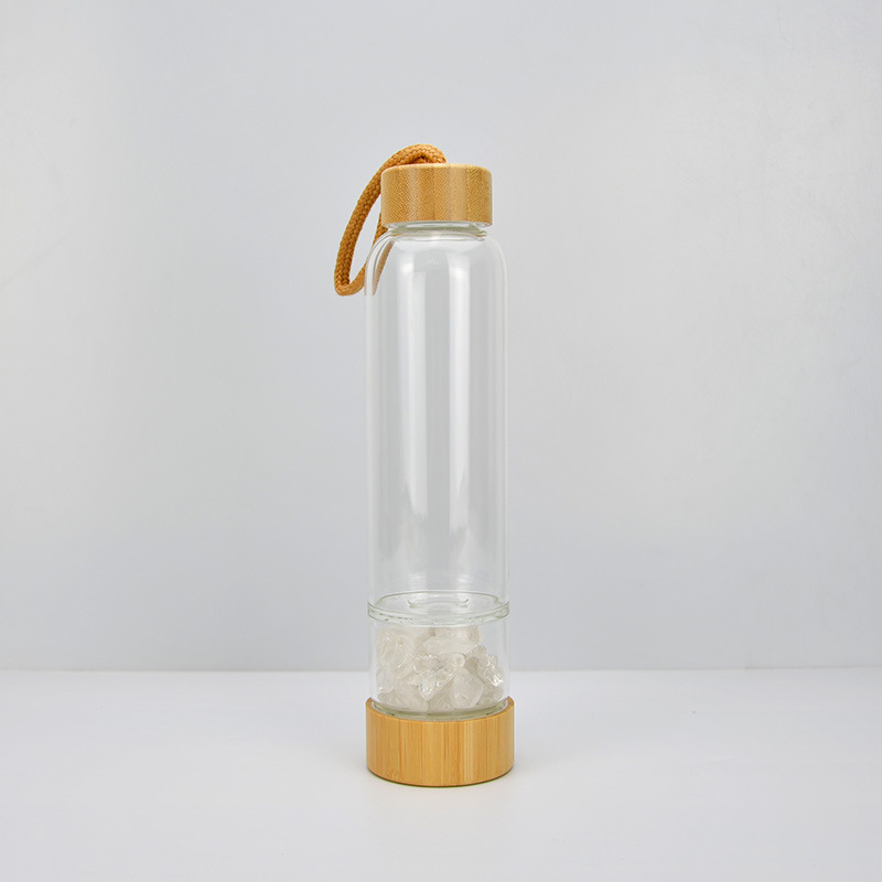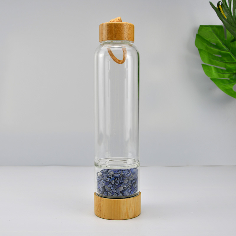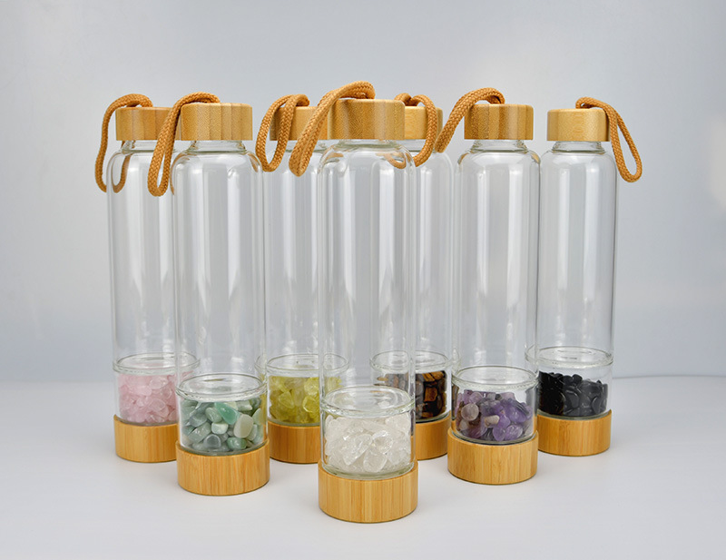 Bamboo Cover Two Capacity Crystal Power Stone Water Cup