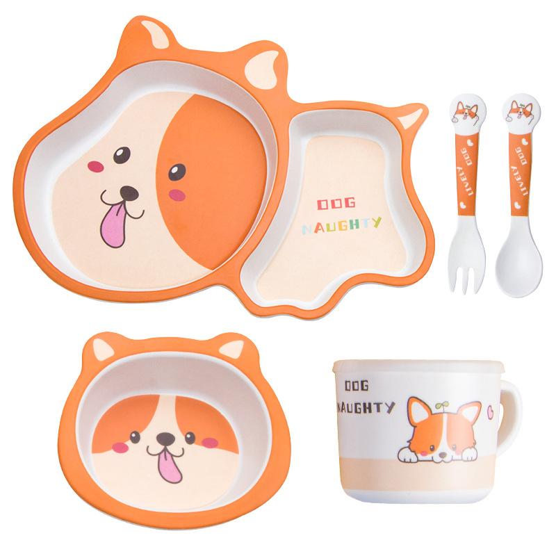 Bamboo Fiber Children's Tableware Set Cartoon Solid Food Bowl
