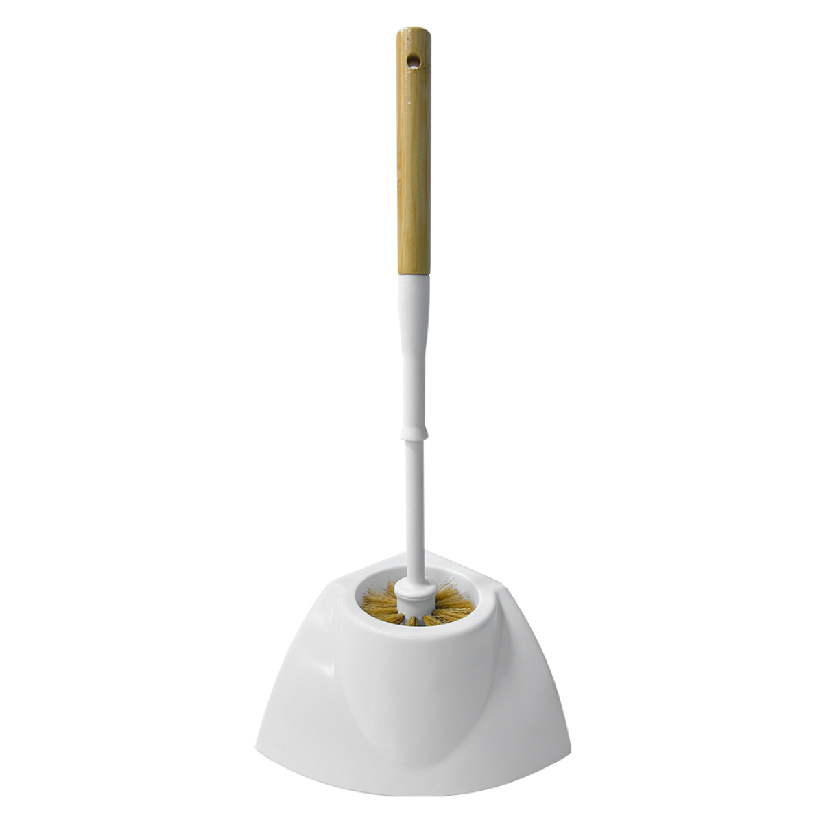 Bamboo Handle Toilet Brush Set-Triangle Base Model-Toilet Brush + Base-PP-White-1 set