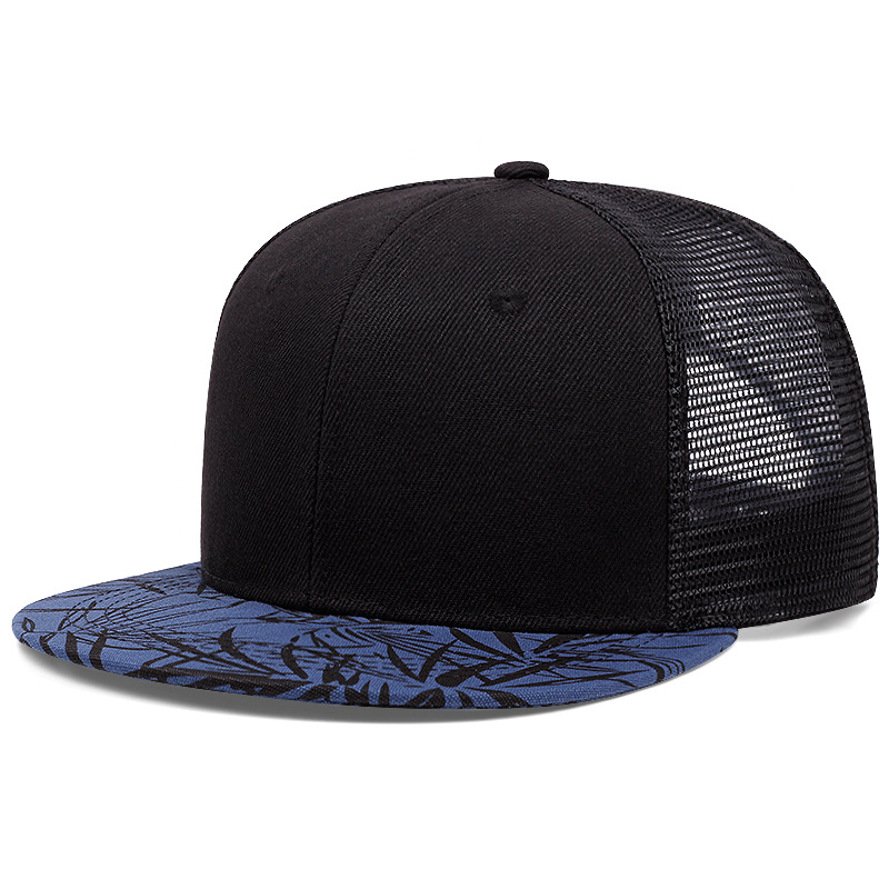Color: bamboo leaf printing blue black full cloth, bamboo leaf printing blue black-rear mesh cap, bamboo leaf printing blue black-cap mesh cap