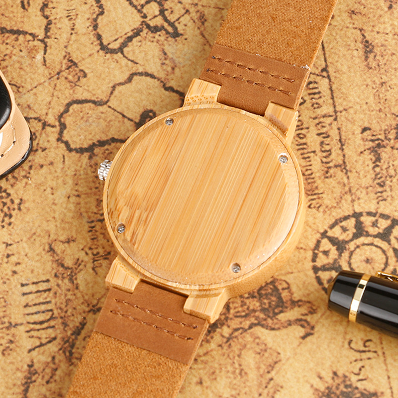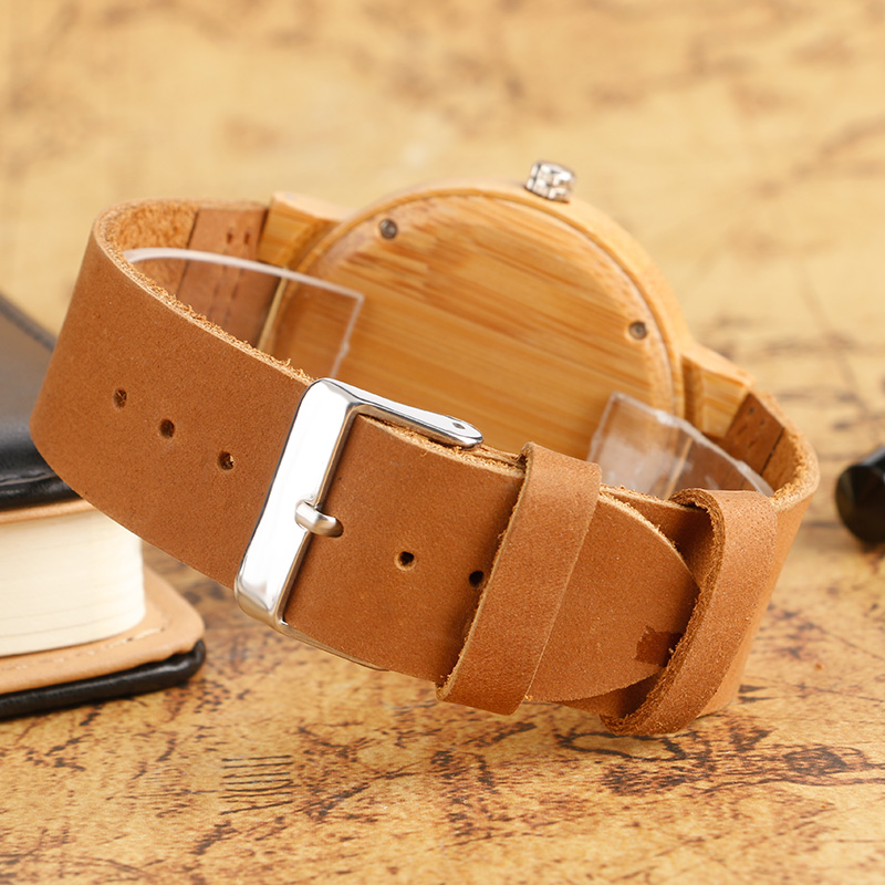 The watch is made from natural wood and is wrapped by hand, so it can have natural hard lines and some imperfections.