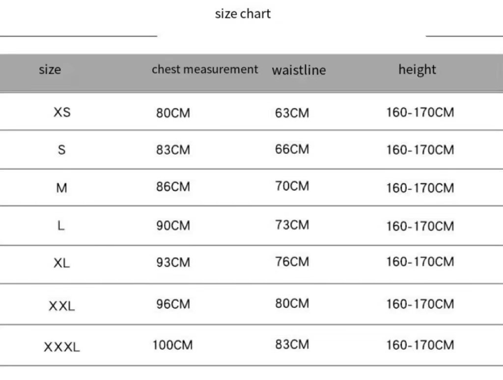 Size: XS/S/M/L/XL/XXL/3XL